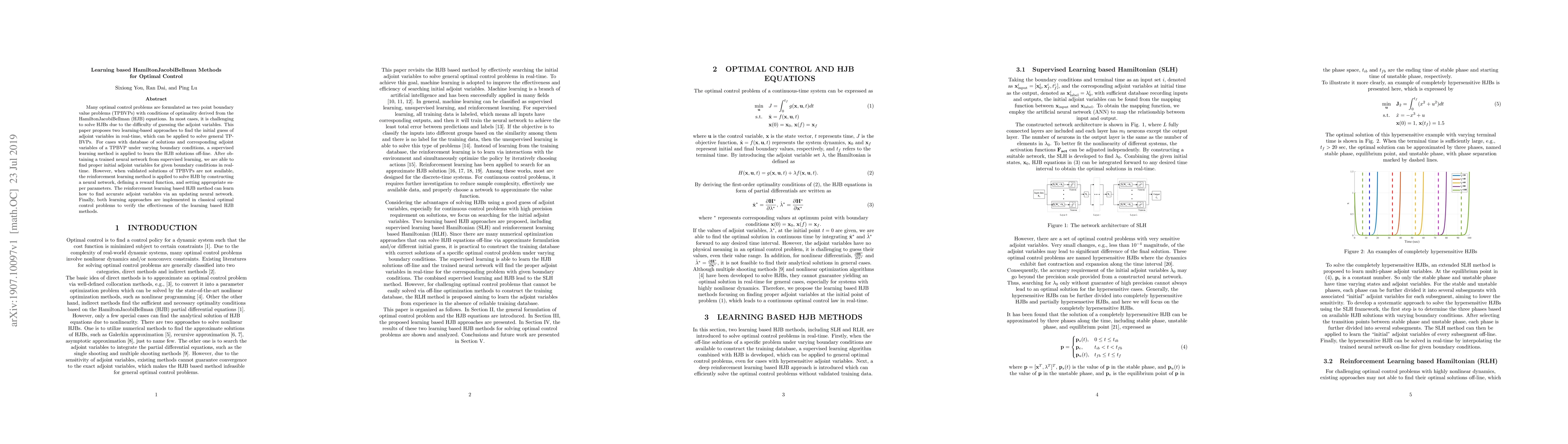 This paper proposes learning-based methods to solve Hamilton-Jacobi-Bellman (HJB) equations for optimal control problems, using supervised learning for cases with existing solution databases and reinforcement learning for scenarios without prior solutions. Both methods aim to provide real-time initial guesses for adjoint variables.