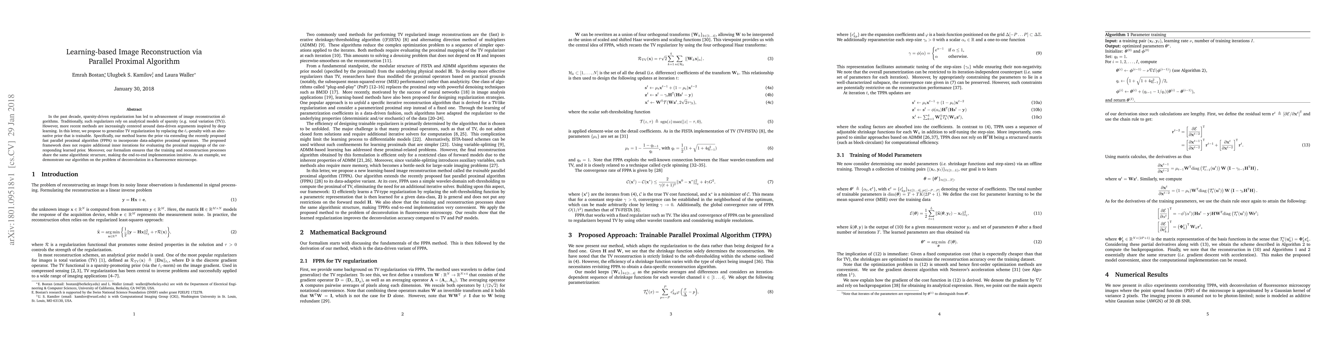 In the past decade, sparsity-driven regularization has led to advancement of image reconstruction algorithms. Traditionally, such regularizers rely on analytical models of sparsity (e.g. total variation (TV)). However, more recent methods are increasingly centered around data-driven arguments inspired by deep learning. In this letter, we propose to generalize TV regularization by replacing the l1-penalty with an alternative prior that is trainable. Specifically, our method learns the prior via extending the recently proposed fast parallel proximal algorithm (FPPA) to incorporate data-adaptive proximal operators. The proposed framework does not require additional inner iterations for evaluating the proximal mappings of the corresponding learned prior. Moreover, our formalism ensures that the training and reconstruction processes share the same algorithmic structure, making the end-to-end implementation intuitive. As an example, we demonstrate our algorithm on the problem of deconvolution in a fluorescence microscope.