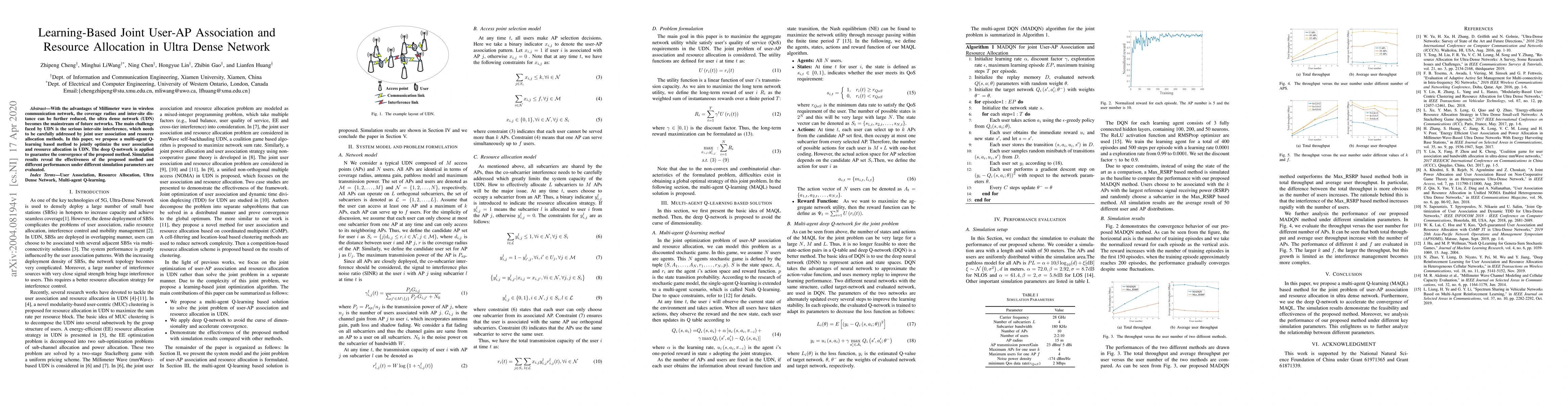 This paper proposes a multi-agent Q-learning method for optimizing user association and resource allocation in ultra dense networks (UDN) to mitigate inter-site interference. The deep Q-network ensures convergence, and simulation results demonstrate its effectiveness under various parameters.