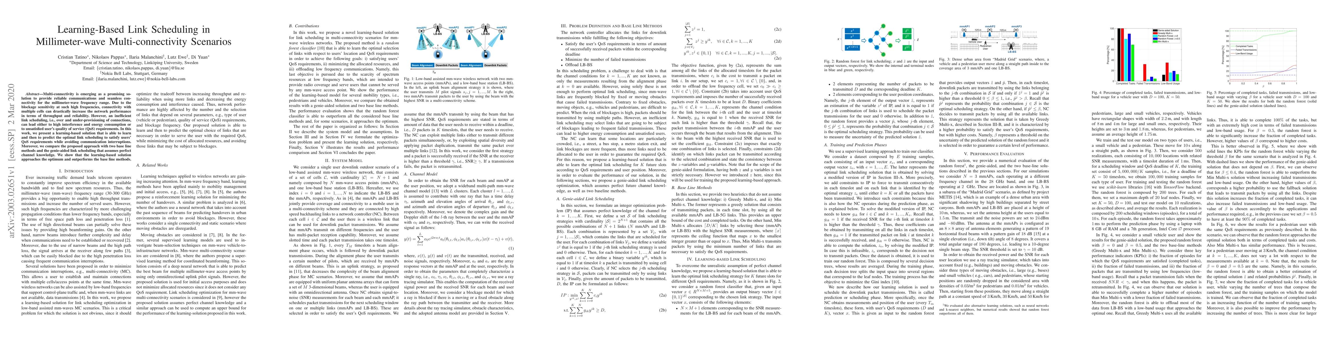 This paper proposes a learning-based method for optimal link scheduling in millimeter-wave multi-connectivity to enhance throughput and reliability, while ensuring user QoS. The approach outperforms baseline methods and approaches the performance of a theoretically perfect scheduler.