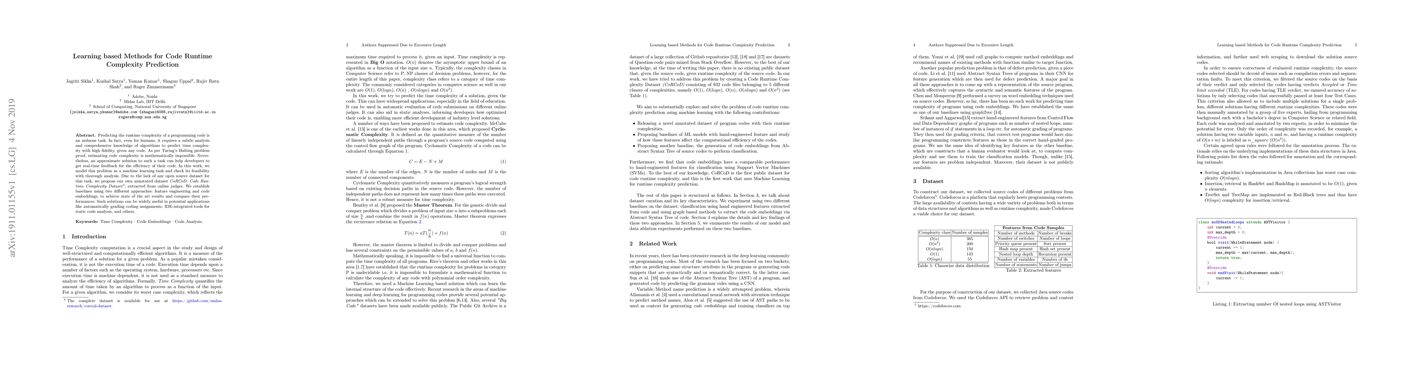 Predicting the runtime complexity of a programming code is an arduous task. In fact, even for humans, it requires a subtle analysis and comprehensive knowledge of algorithms to predict time complexity with high fidelity, given any code. As per Turing's Halting problem proof, estimating code complexity is mathematically impossible. Nevertheless, an approximate solution to such a task can help developers to get real-time feedback for the efficiency of their code. In this work, we model this problem as a machine learning task and check its feasibility with thorough analysis. Due to the lack of any open source dataset for this task, we propose our own annotated dataset CoRCoD: Code Runtime Complexity Dataset, extracted from online judges. We establish baselines using two different approaches: feature engineering and code embeddings, to achieve state of the art results and compare their performances. Such solutions can be widely useful in potential applications like automatically grading coding assignments, IDE-integrated tools for static code analysis, and others.