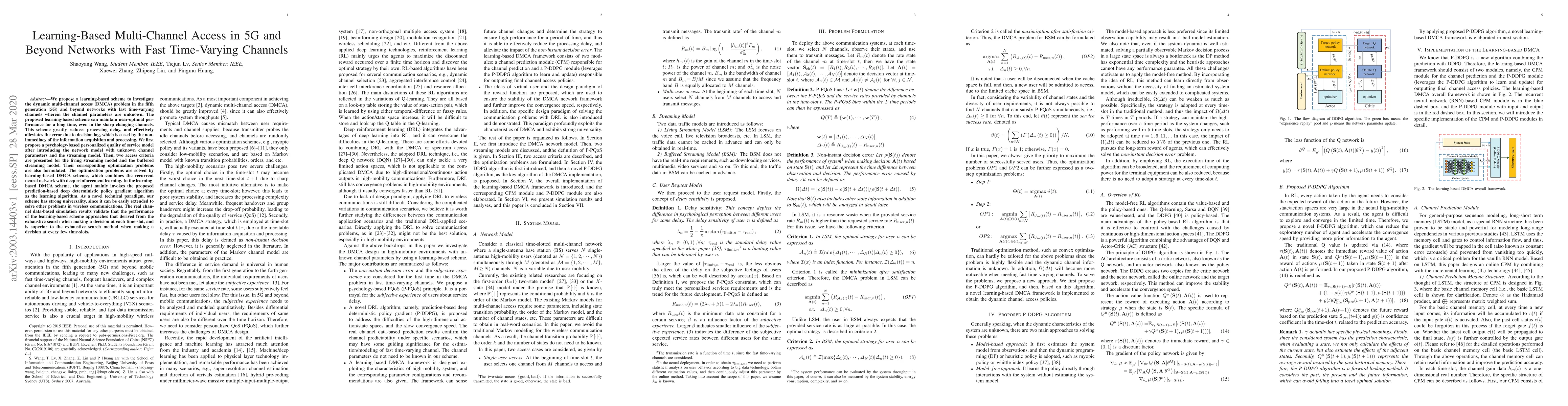 A learning-based scheme is proposed to manage multi-channel access in 5G networks with fast time-varying channels, reducing processing delay and error due to decision lag.