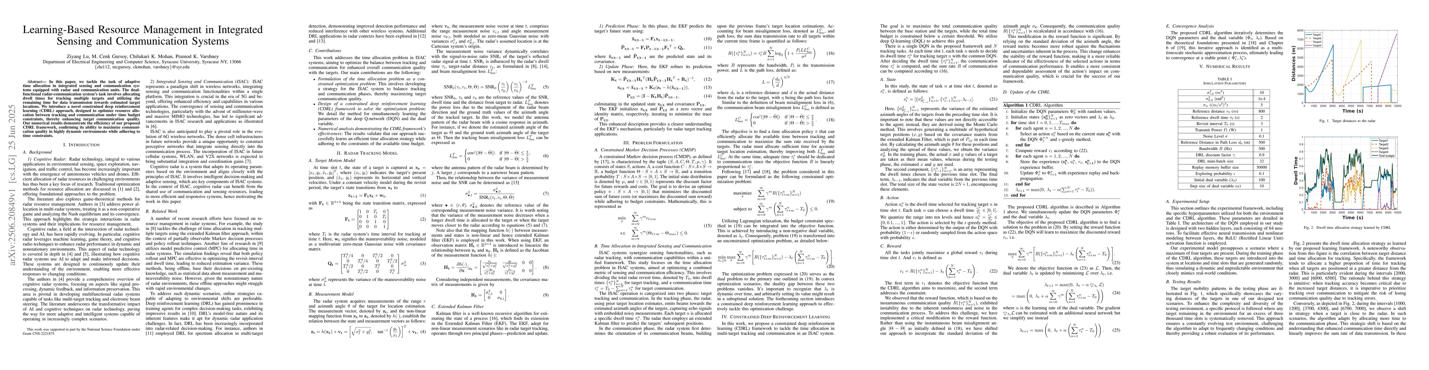 This paper presents a Constrained Deep Reinforcement Learning (CDRL) method for optimizing resource allocation in dual-functional radar-communication systems. The approach effectively balances time between target tracking and communication, improving communication quality under strict time constraints, as validated by numerical results in dynamic environments.