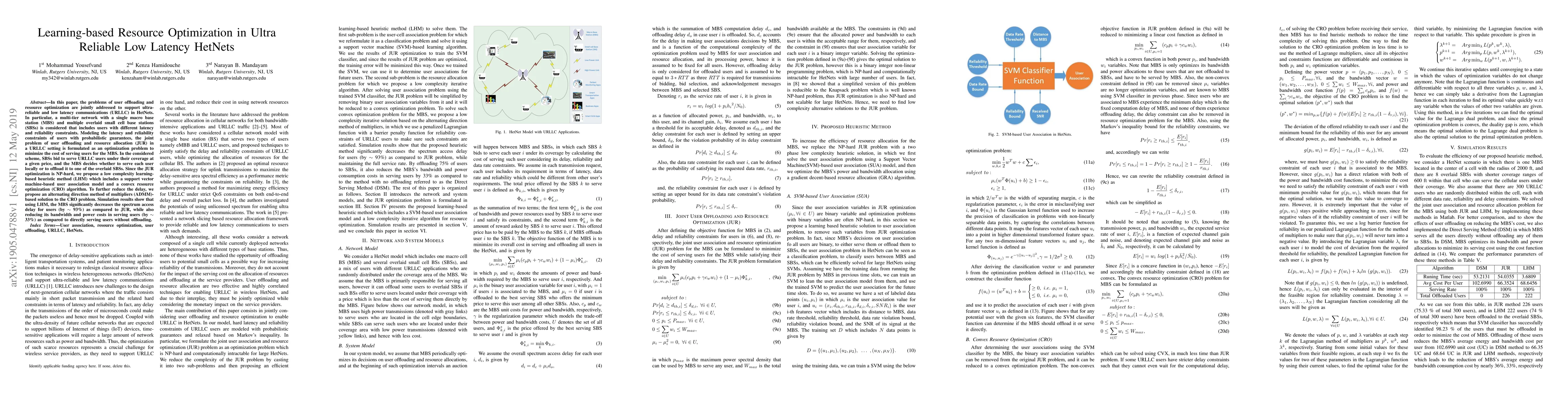 This paper addresses user offloading and resource optimization in heterogeneous networks (HetNets) to support ultra-reliable and low latency communications (URLLC). It proposes a learning-based heuristic method (LHM) to efficiently solve the NP-hard joint user offloading and resource allocation problem, significantly reducing spectrum access delay and cost for the macro base station.