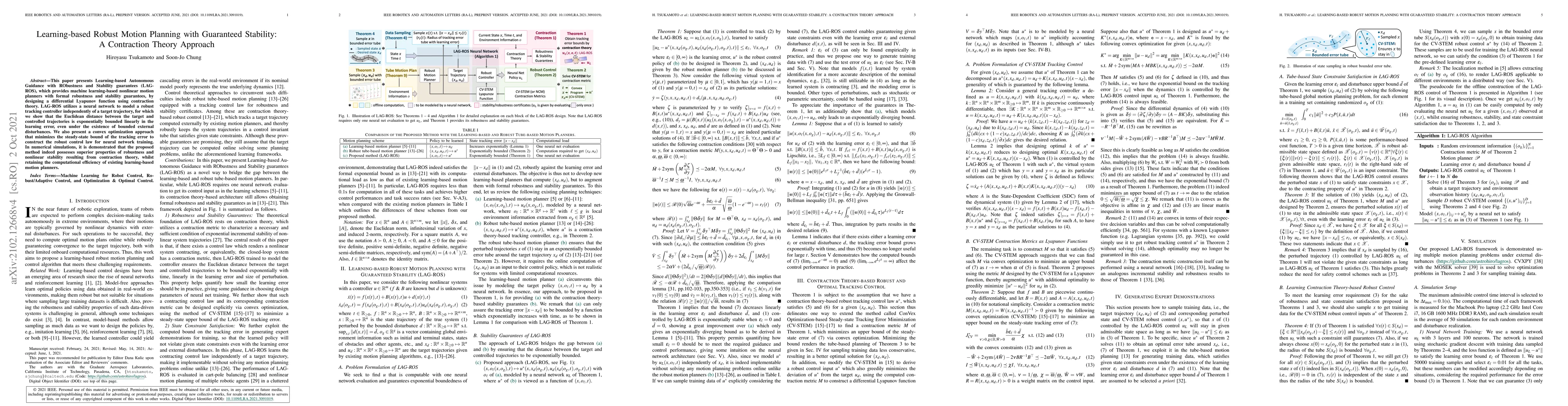 This paper introduces LAG-ROS, a machine learning-based motion planner that guarantees robustness and stability using contraction theory and a neural network. The method ensures exponentially bounded tracking error under disturbances, demonstrating superior robustness and stability in simulations.