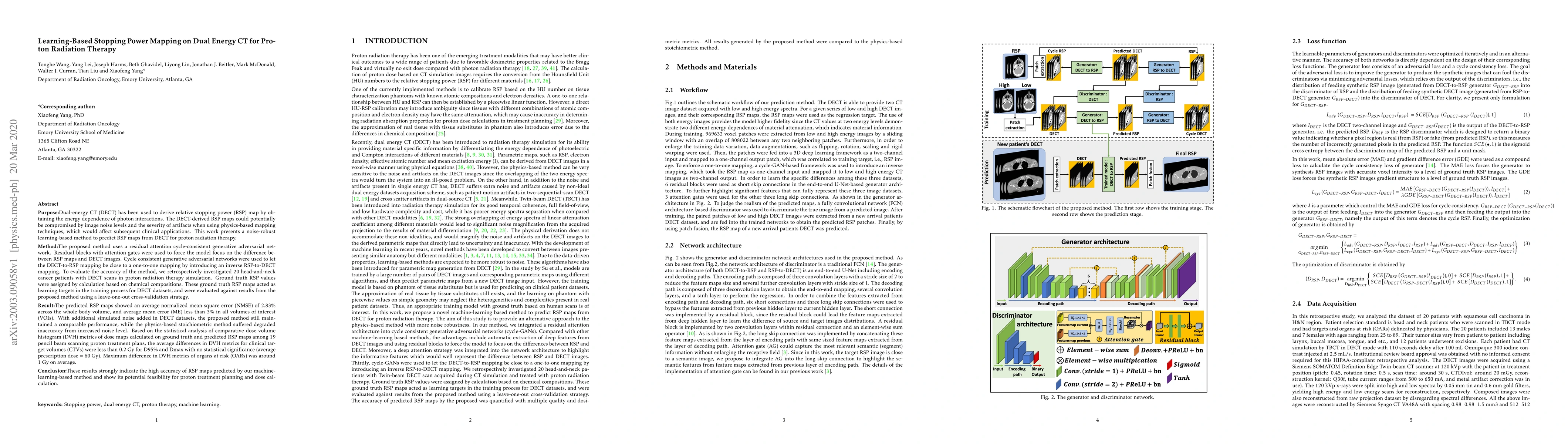 This paper proposes a noise-robust learning-based method using a CycleGAN network to predict relative stopping power maps from dual-energy CT for proton radiation therapy, achieving high accuracy and maintaining performance under noise conditions, outperforming traditional physics-based methods.