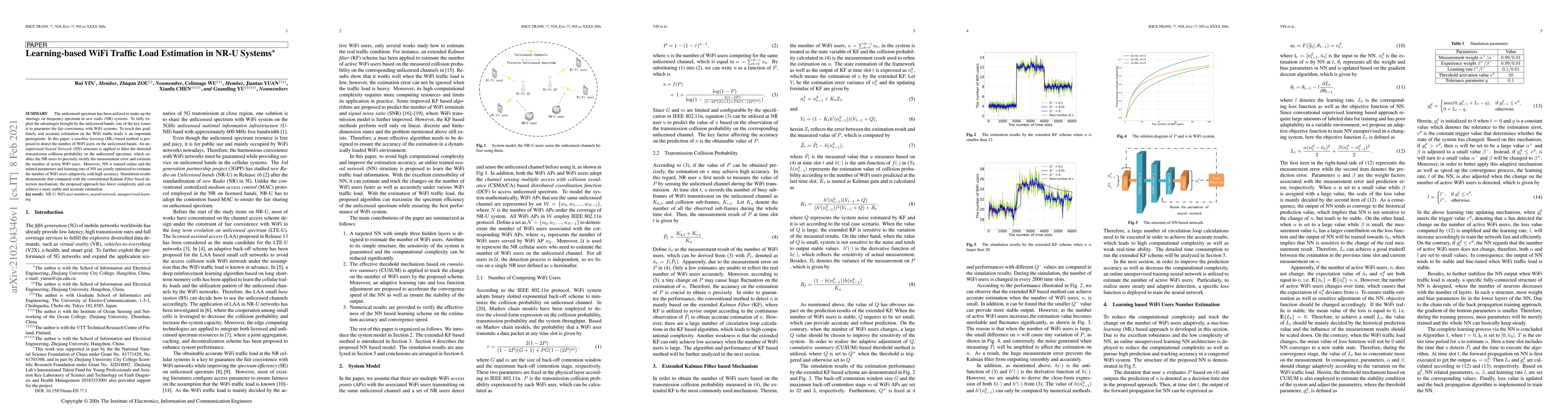 A machine learning-based method is proposed to estimate WiFi traffic loads in unlicensed spectrum for NR systems, achieving more accurate and stable estimations than traditional methods.