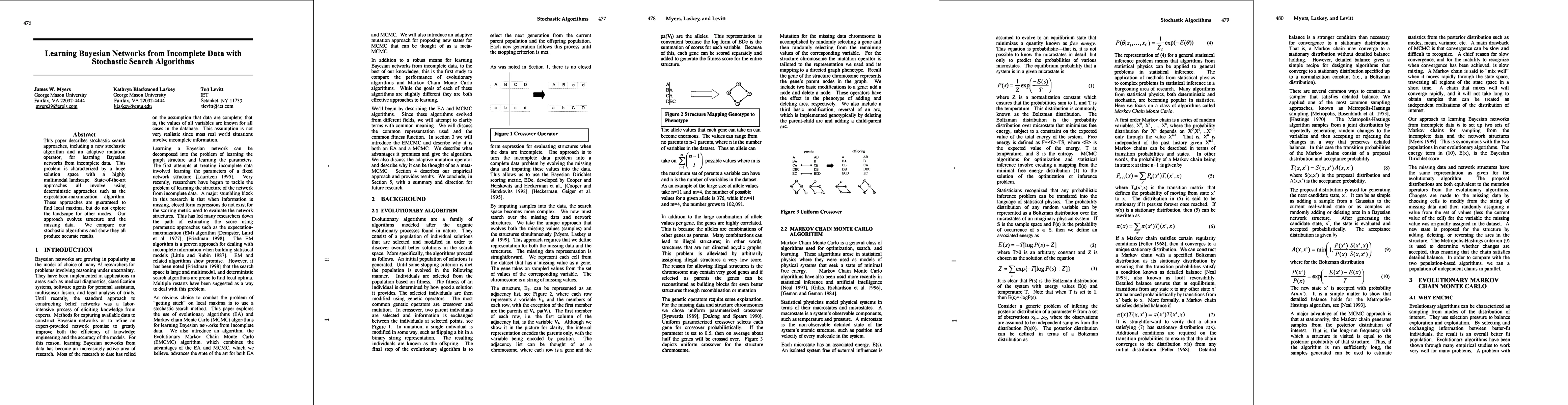 This paper describes stochastic search approaches, including a new stochastic algorithm and an adaptive mutation operator, for learning Bayesian networks from incomplete data. This problem is characterized by a huge solution space with a highly multimodal landscape. State-of-the-art approaches all involve using deterministic approaches such as the expectation-maximization algorithm. These approaches are guaranteed to find local maxima, but do not explore the landscape for other modes. Our approach evolves structure and the missing data. We compare our stochastic algorithms and show they all produce accurate results.