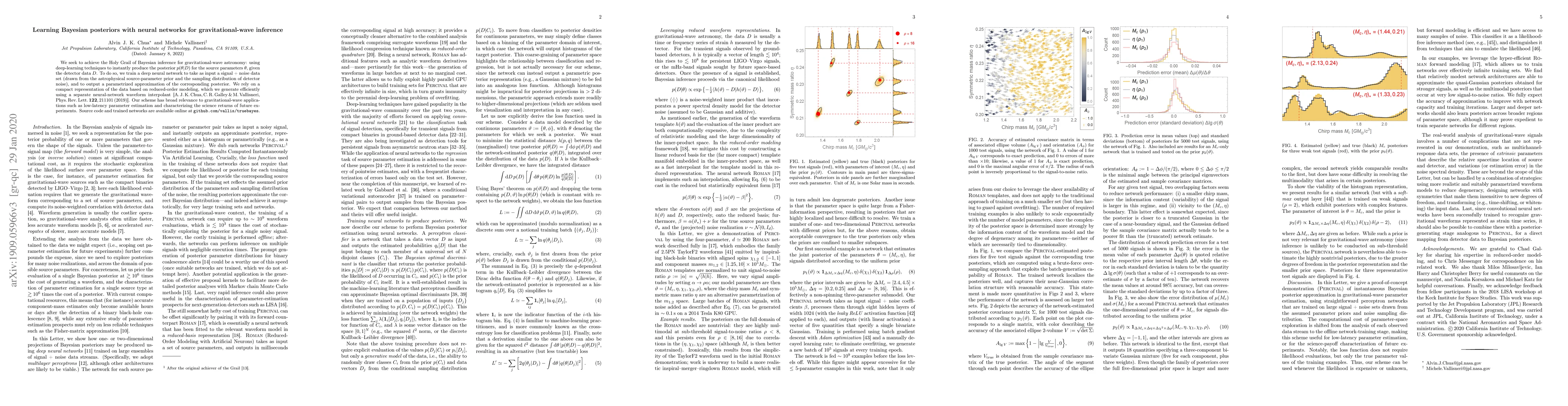 This paper proposes using deep neural networks for instant Bayesian inference in gravitational-wave astronomy, aiming to produce posterior distributions for source parameters. The method employs reduced-order modeling and a separate neural network for waveform interpolation, offering potential for low-latency parameter estimation and future experiment analysis.