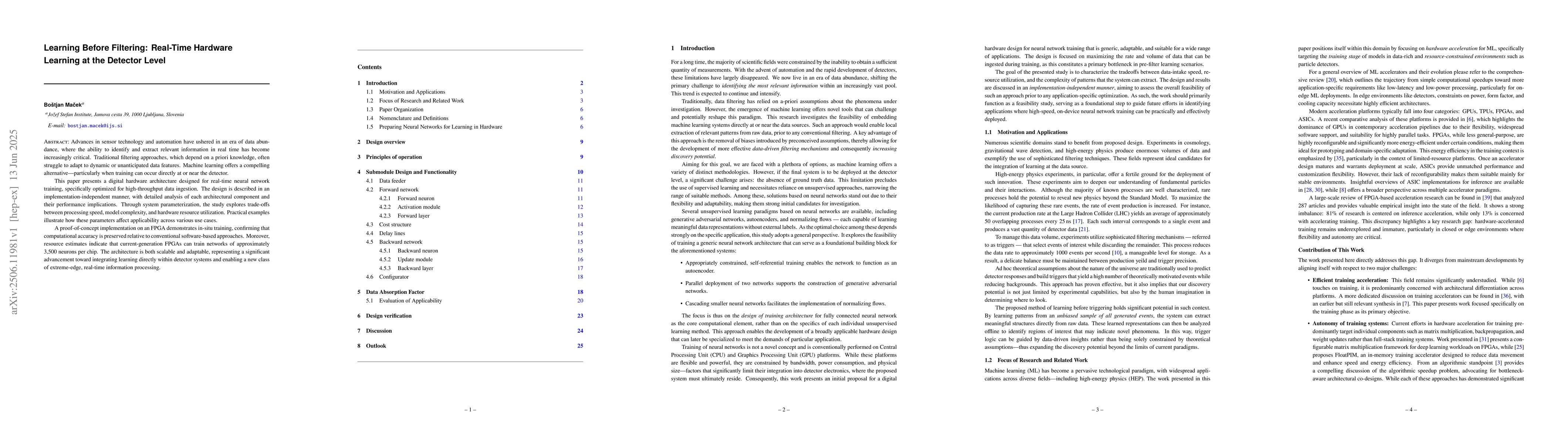 Advances in sensor technology and automation have ushered in an era of data abundance, where the ability to identify and extract relevant information in real time has become increasingly critical. Traditional filtering approaches, which depend on a priori knowledge, often struggle to adapt to dynamic or unanticipated data features. Machine learning offers a compelling alternative-particularly when training can occur directly at or near the detector. This paper presents a digital hardware architecture designed for real-time neural network training, specifically optimized for high-throughput data ingestion. The design is described in an implementation-independent manner, with detailed analysis of each architectural component and their performance implications. Through system parameterization, the study explores trade-offs between processing speed, model complexity, and hardware resource utilization. Practical examples illustrate how these parameters affect applicability across various use cases. A proof-of-concept implementation on an FPGA demonstrates in-situ training, confirming that computational accuracy is preserved relative to conventional software-based approaches. Moreover, resource estimates indicate that current-generation FPGAs can train networks of approximately 3,500 neurons per chip. The architecture is both scalable and adaptable, representing a significant advancement toward integrating learning directly within detector systems and enabling a new class of extreme-edge, real-time information processing.