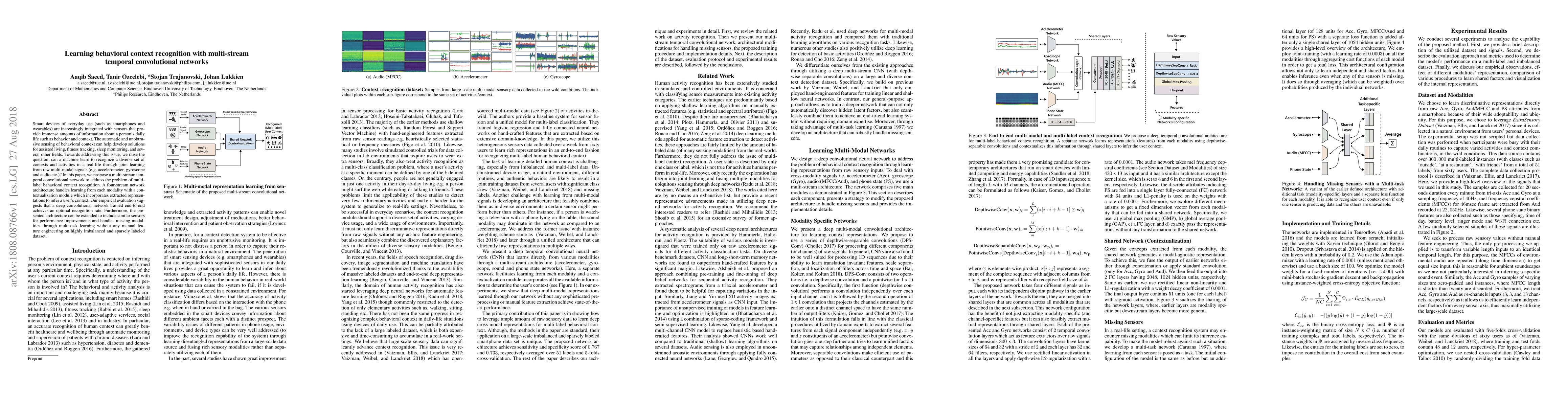 A machine learning model using a multi-stream temporal convolutional network can recognize diverse contexts and activities in daily life from raw sensor data. The model achieves optimal recognition rates with minimal manual feature engineering.