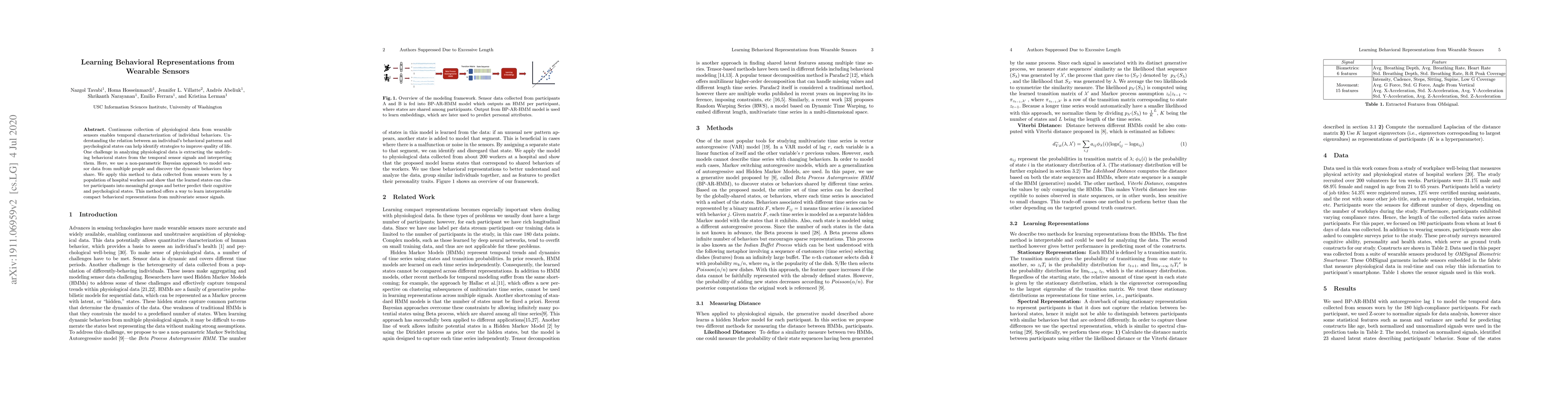 Continuous collection of physiological data from wearable sensors enables temporal characterization of individual behaviors. Understanding the relation between an individual's behavioral patterns and psychological states can help identify strategies to improve quality of life. One challenge in analyzing physiological data is extracting the underlying behavioral states from the temporal sensor signals and interpreting them. Here, we use a non-parametric Bayesian approach to model sensor data from multiple people and discover the dynamic behaviors they share. We apply this method to data collected from sensors worn by a population of hospital workers and show that the learned states can cluster participants into meaningful groups and better predict their cognitive and psychological states. This method offers a way to learn interpretable compact behavioral representations from multivariate sensor signals.