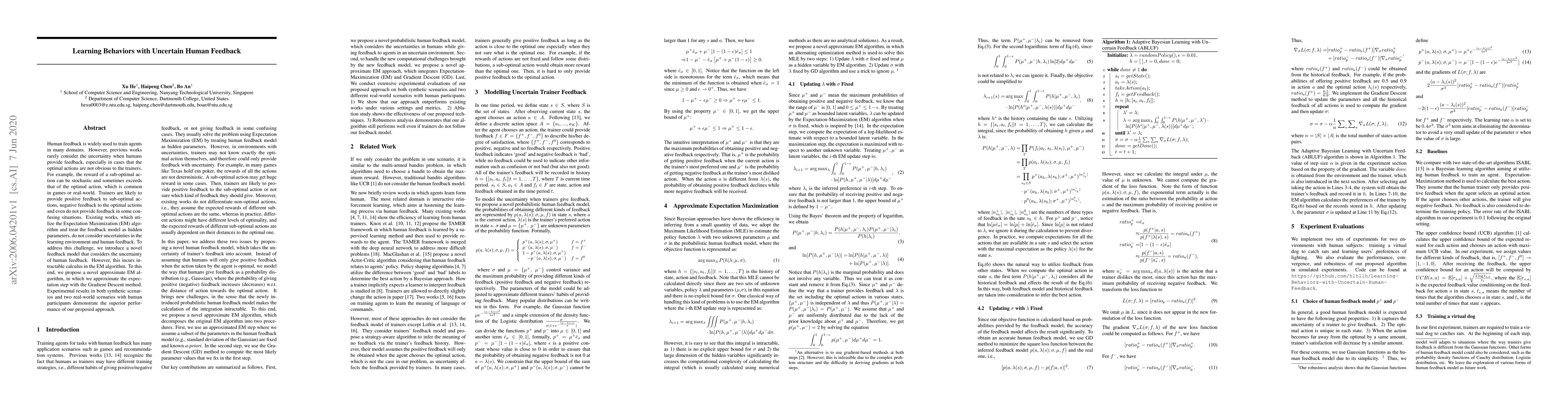 This paper introduces a novel feedback model to account for uncertainty in human feedback during agent training, proposing an approximate EM algorithm to handle the complexity. Experimental results show improved performance over existing methods in both synthetic and real-world scenarios.