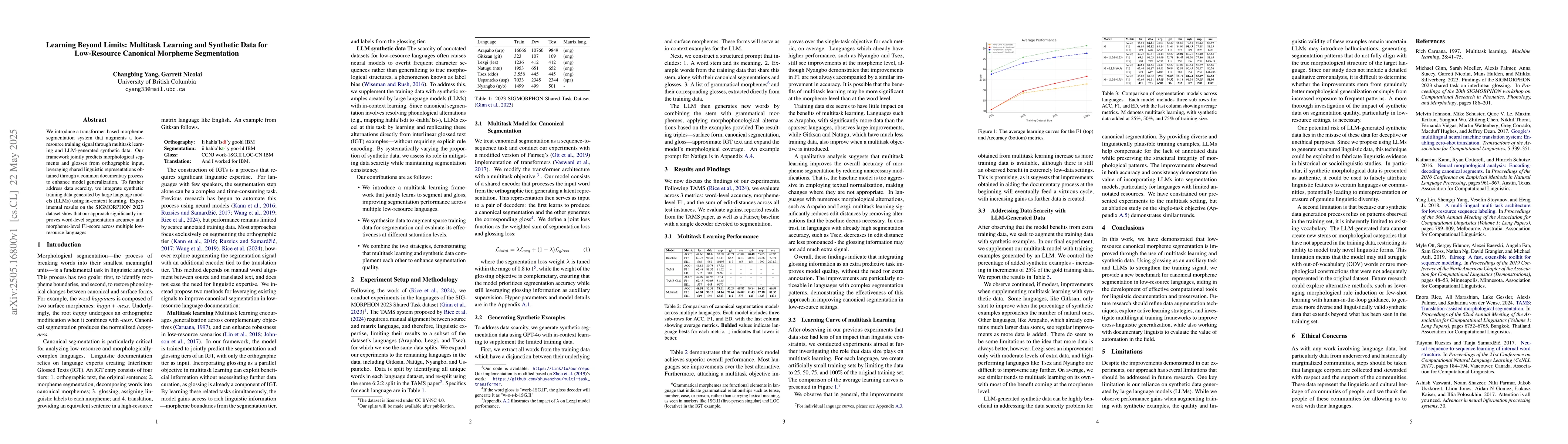 This work stands out by combining multitask learning with synthetic data generation using LLMs, specifically through in-context learning, to tackle the challenge of low-resource morpheme segmentation.