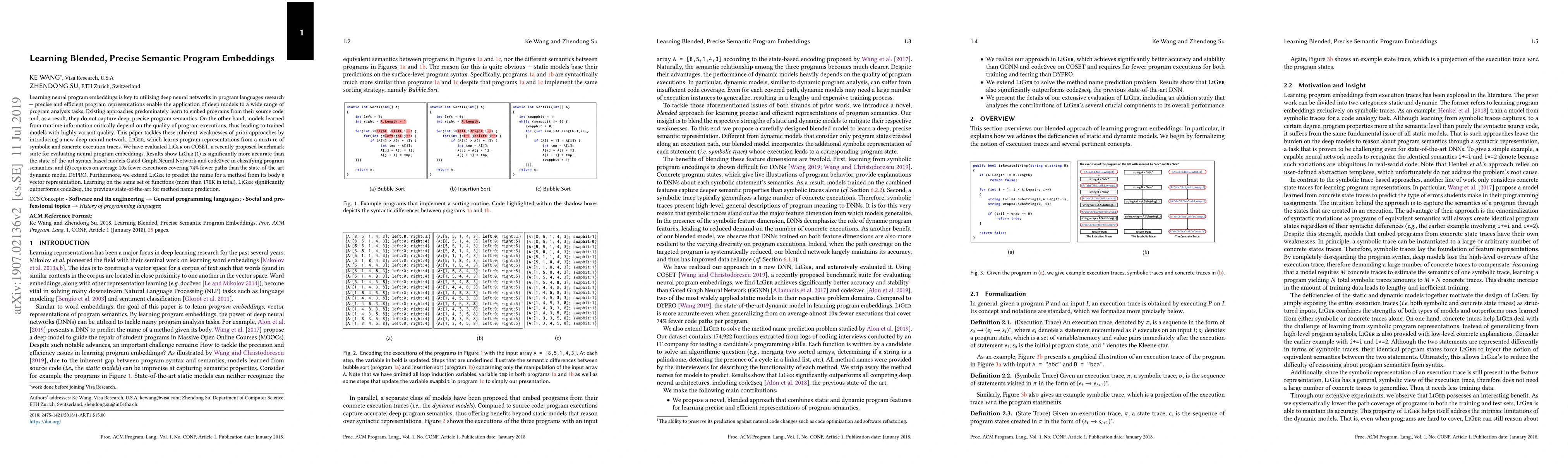 This paper introduces \liger, a novel deep neural network that learns precise semantic program embeddings from a blend of symbolic and execution traces, outperforming existing models in program semantics classification and method name prediction while requiring significantly fewer executions. \liger demonstrates superior accuracy and efficiency compared to both syntax-based and dynamic models.