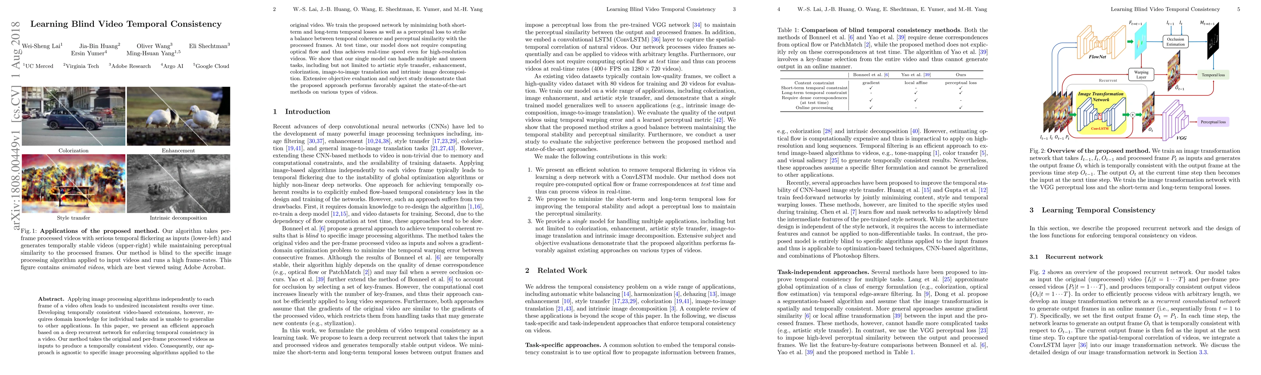 This paper proposes an end-to-end deep recurrent network to enforce temporal consistency in videos, capable of generalizing across various image processing tasks without requiring domain-specific knowledge. The model achieves real-time performance and outperforms state-of-the-art methods in both objective and subjective evaluations.