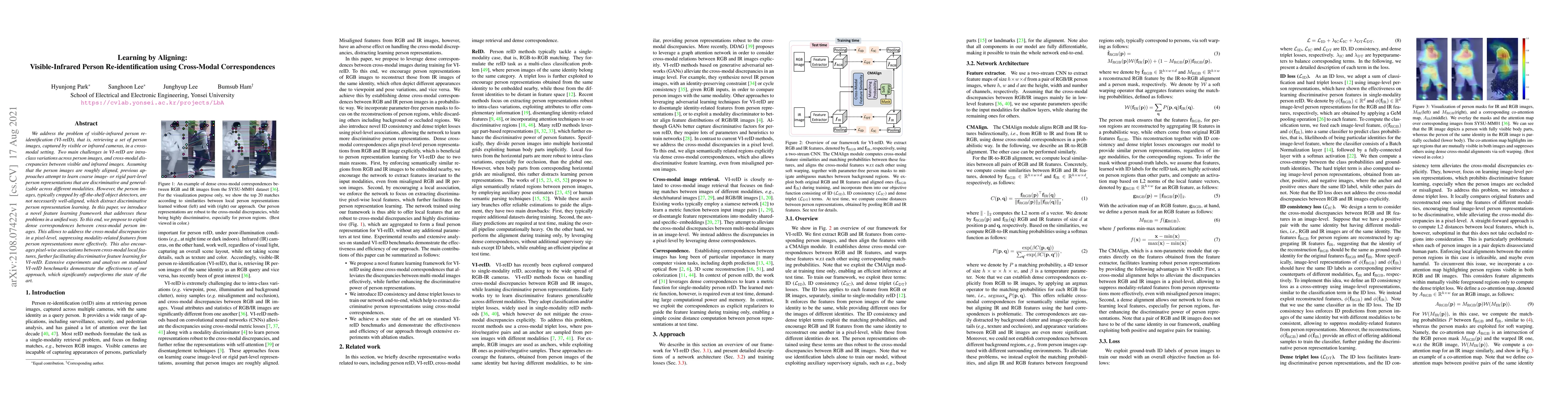 This paper proposes a novel feature learning framework for visible-infrared person re-identification by exploiting dense correspondences between cross-modal person images to effectively suppress modality-related features and enhance discriminative feature learning. The approach significantly outperforms state-of-the-art methods on standard benchmarks.