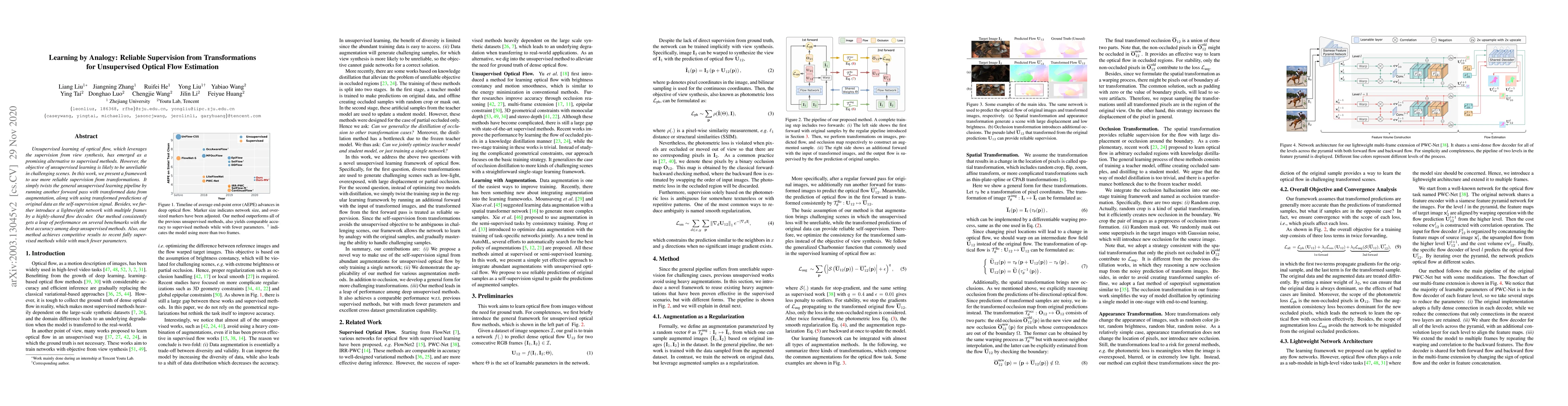 Unsupervised learning of optical flow, which leverages the supervision from view synthesis, has emerged as a promising alternative to supervised methods. However, the objective of unsupervised learning is likely to be unreliable in challenging scenes. In this work, we present a framework to use more reliable supervision from transformations. It simply twists the general unsupervised learning pipeline by running another forward pass with transformed data from augmentation, along with using transformed predictions of original data as the self-supervision signal. Besides, we further introduce a lightweight network with multiple frames by a highly-shared flow decoder. Our method consistently gets a leap of performance on several benchmarks with the best accuracy among deep unsupervised methods. Also, our method achieves competitive results to recent fully supervised methods while with much fewer parameters.