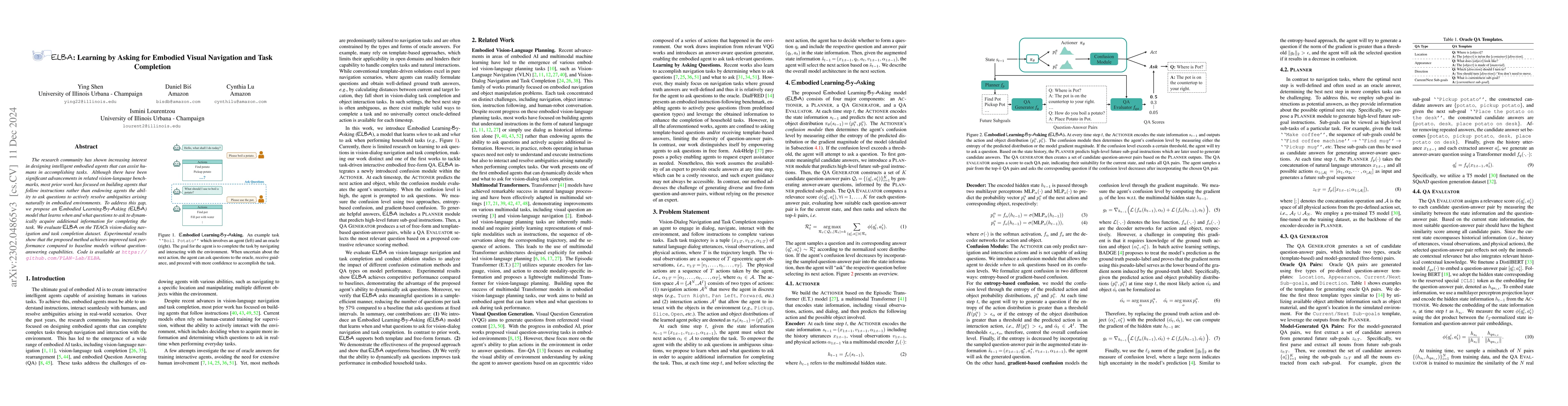 This paper proposes an Embodied Learning-By-Asking (ELBA) model that enables embodied agents to ask questions to resolve ambiguities during navigation and task completion. The model's performance is evaluated on the TEACH dataset, demonstrating improved task success rates compared to baseline models.
