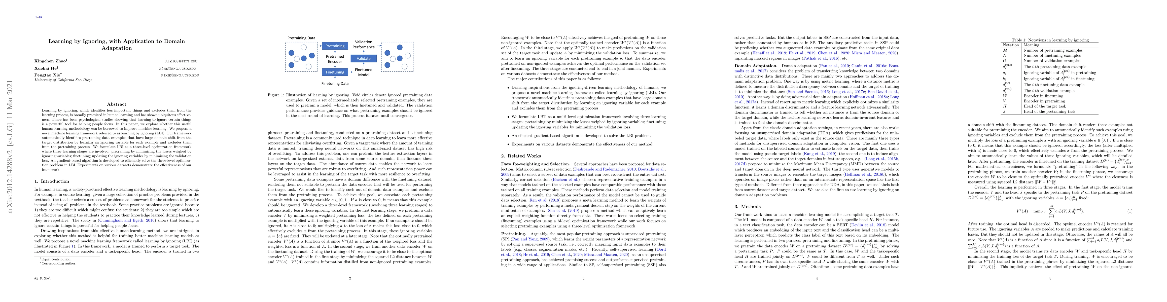 Researchers propose a new machine learning framework called Learning by Ignoring (LBI), which automatically excludes examples with large domain shift from pretraining to improve model performance.