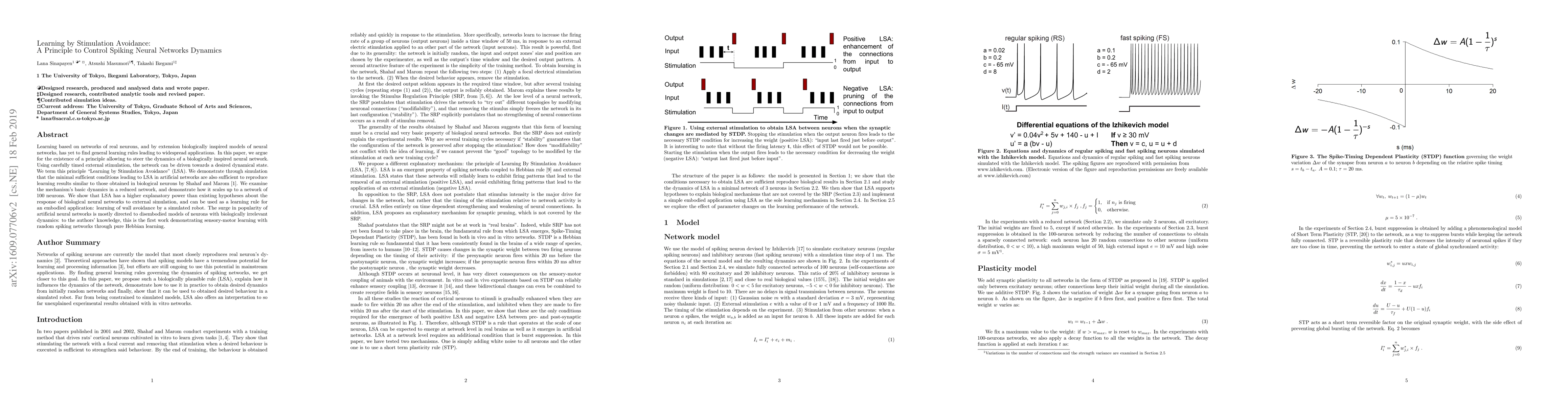 This paper proposes "Learning by Stimulation Avoidance" (LSA) as a principle to control the dynamics of biologically inspired spiking neural networks, demonstrating its effectiveness through simulations and its application in a robot's wall avoidance task. LSA shows higher explanatory power compared to existing hypotheses and represents a novel method for sensory-motor learning in random spiking networks.