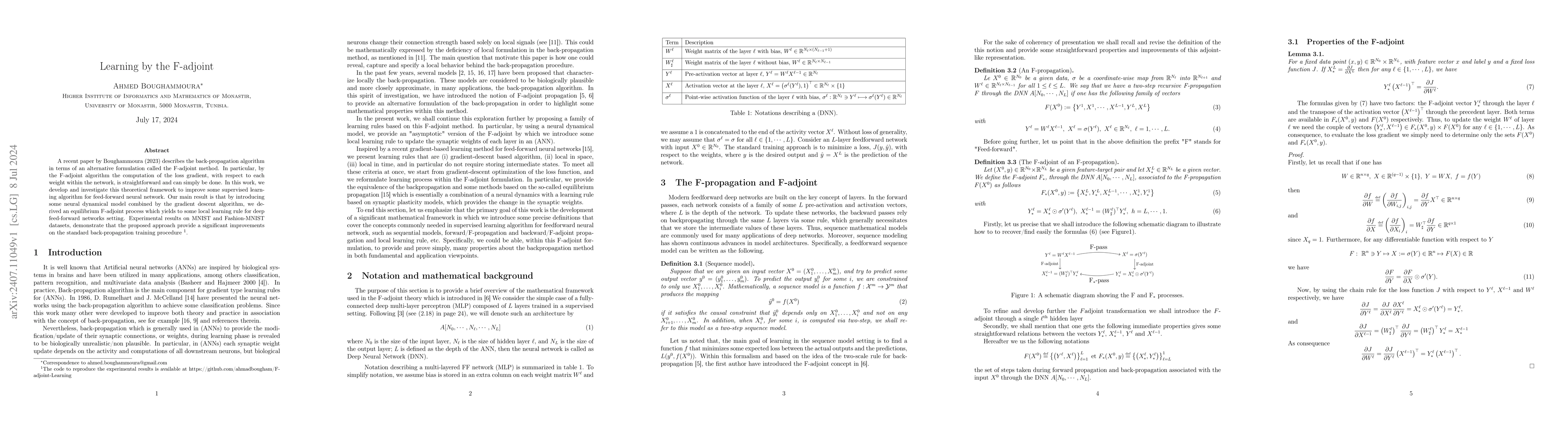 Title: Learning by the F-adjoint Summary: This paper introduces the F-adjoint method as an alternative to back-propagation for training feed-forward neural networks, proposing a neural dynamical model combined with gradient descent that leads to an equilibrium F-adjoint process, resulting in improved performance over standard back-propagation on MNIST and Fashion-MNIST datasets.