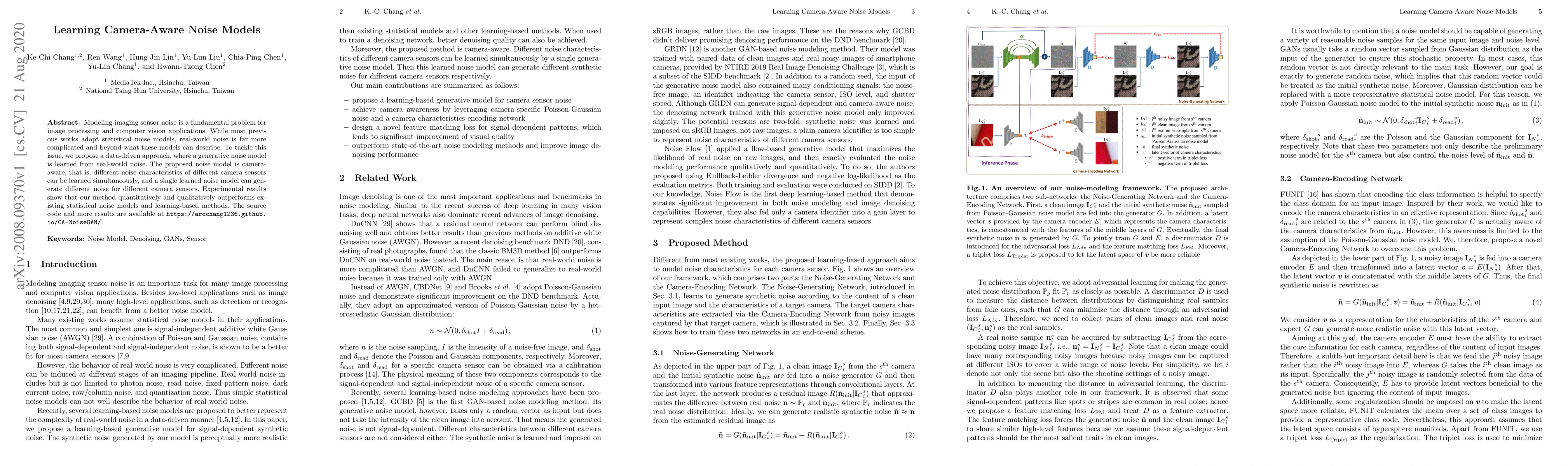 This paper proposes a data-driven, camera-aware generative noise model to better capture the complexities of real-world sensor noise. The model outperforms existing statistical and learning-based methods in both quantitative and qualitative assessments.