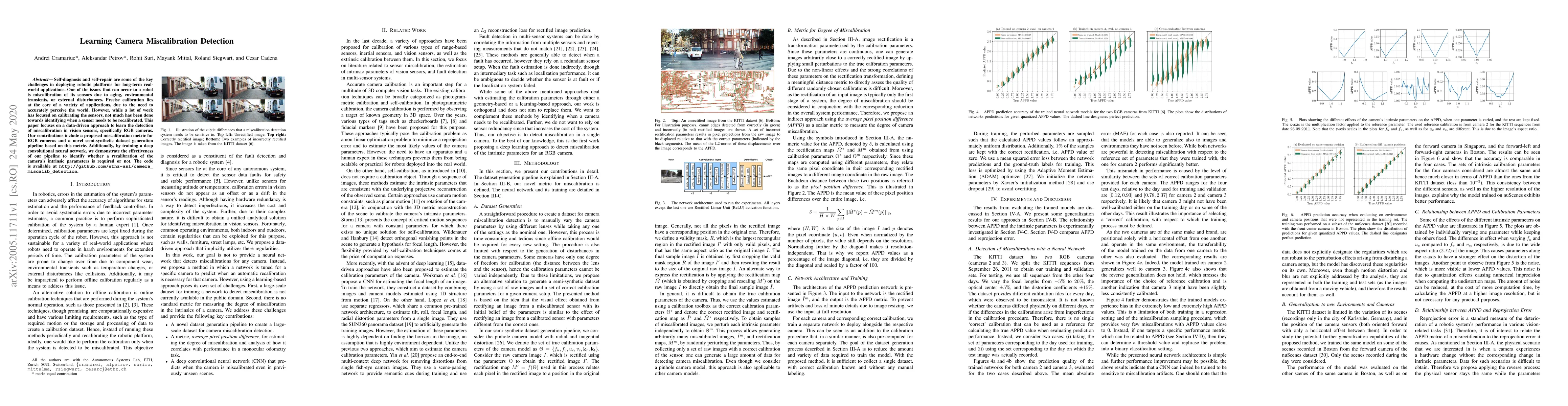 This research introduces a data-driven method to detect miscalibration in RGB cameras, crucial for robotic long-term real-world applications. It proposes a miscalibration metric and a semi-synthetic dataset generation pipeline, then demonstrates the effectiveness of a deep learning model in identifying the need for camera recalibration.