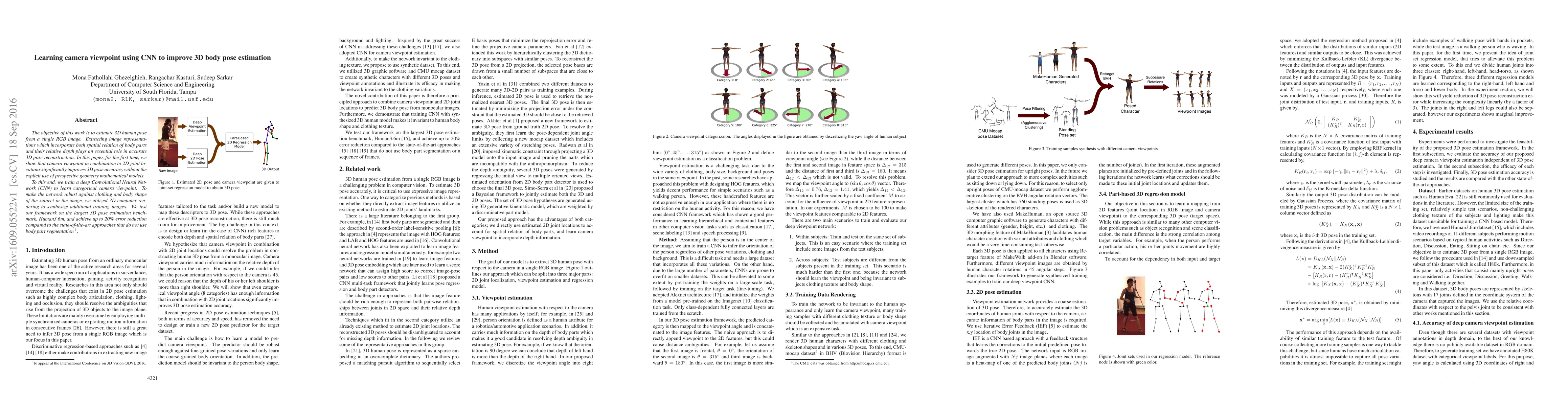 Researchers developed a CNN to learn camera viewpoint from a single image, improving 3D body pose estimation accuracy by up to 20% on the Human3.6m benchmark.