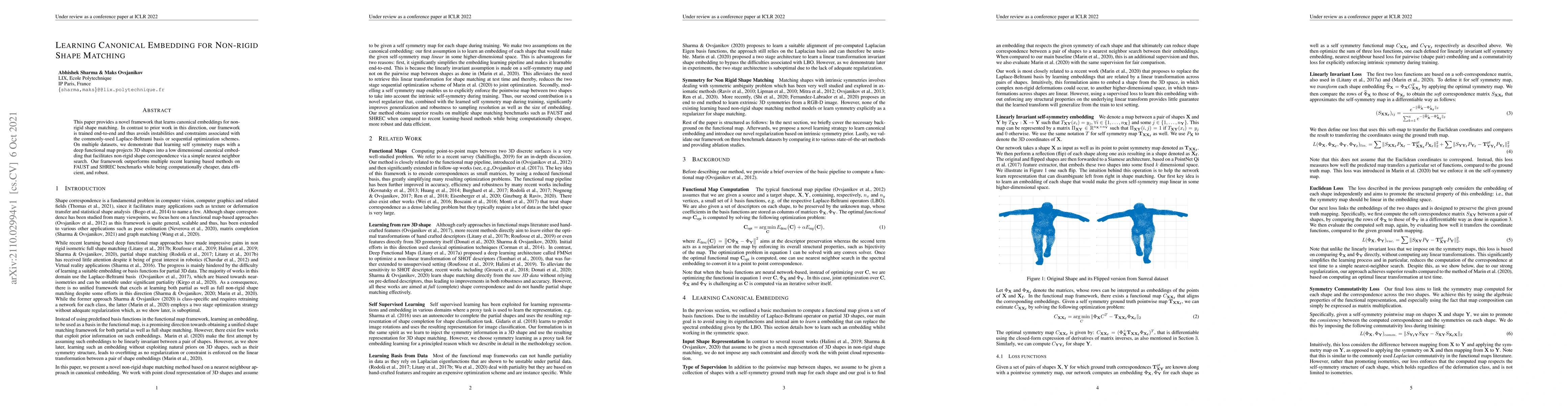 This paper introduces an end-to-end framework for learning canonical embeddings for non-rigid shape matching, outperforming recent methods on benchmarks while being computationally efficient and robust. The approach uses deep functional maps to project 3D shapes into a low-dimensional space for correspondence via nearest neighbor search.