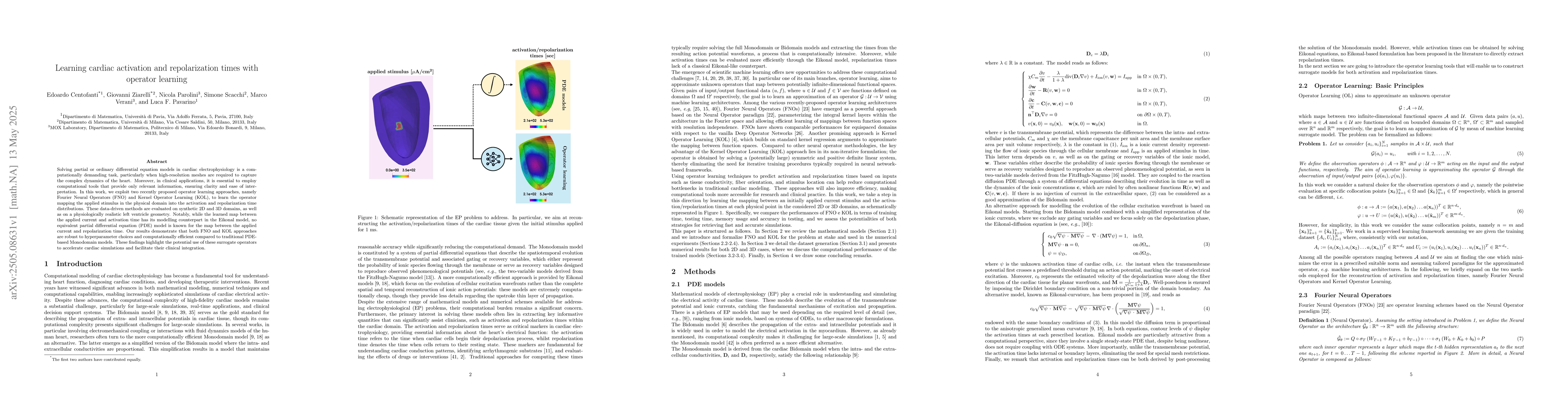 The paper introduces the application of FNO and KOL for learning cardiac activation and repolarization times, showcasing their efficiency and robustness compared to traditional PDE-based methods.