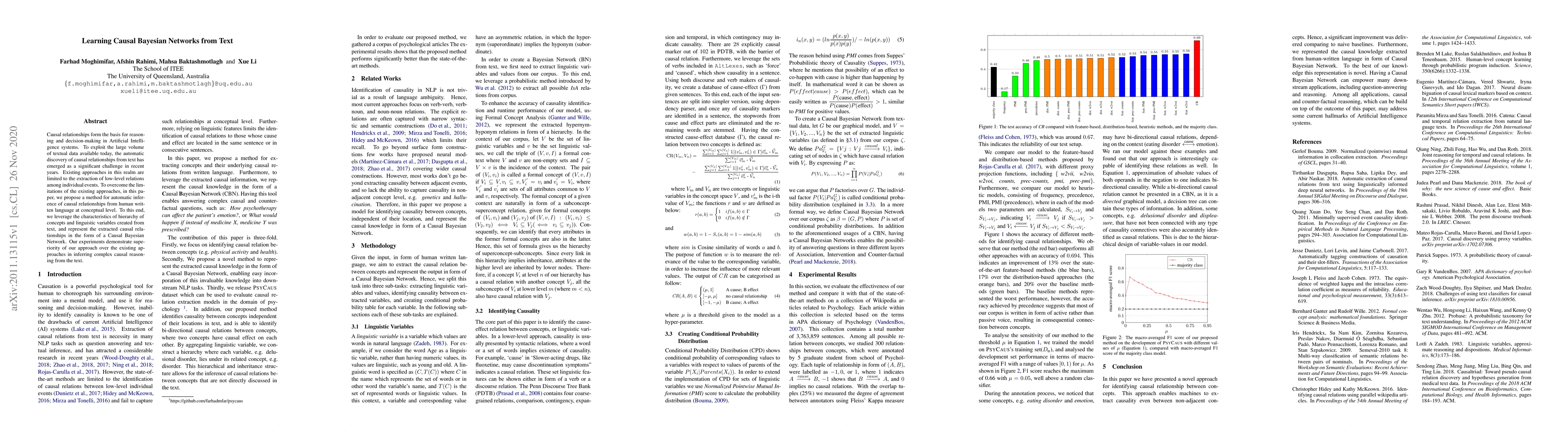 This paper proposes a novel method for automatically inferring high-level causal relationships from human-written text, leveraging the hierarchy of concepts and linguistic variables to construct a Causal Bayesian Network. The approach outperforms existing methods in inferring complex causal reasoning from textual data.