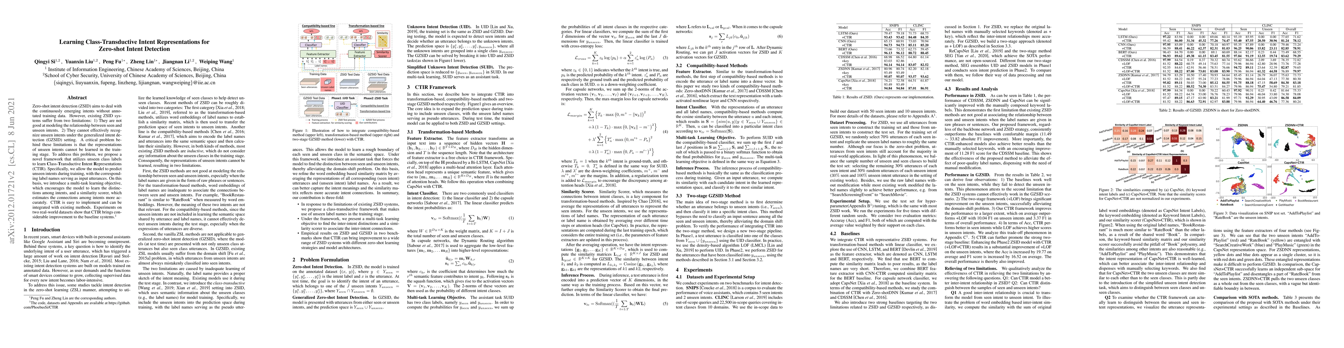 This paper proposes a novel framework for zero-shot intent detection that learns class-transductive intent representations (CTIR) by predicting unseen intents during training. The approach uses multi-task learning and a similarity scorer to better model relationships between seen and unseen intents, leading to significant improvements over baseline systems.