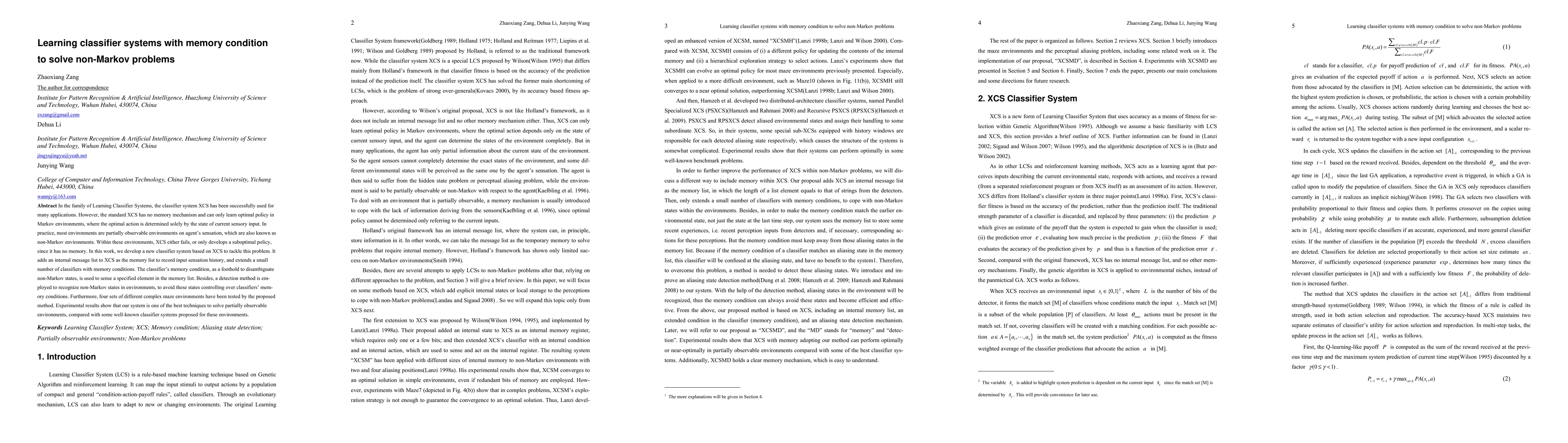 Researchers developed a new classifier system to solve non-Markov problems in partially observable environments, using an internal memory list to record input history and recognize non-Markov states.