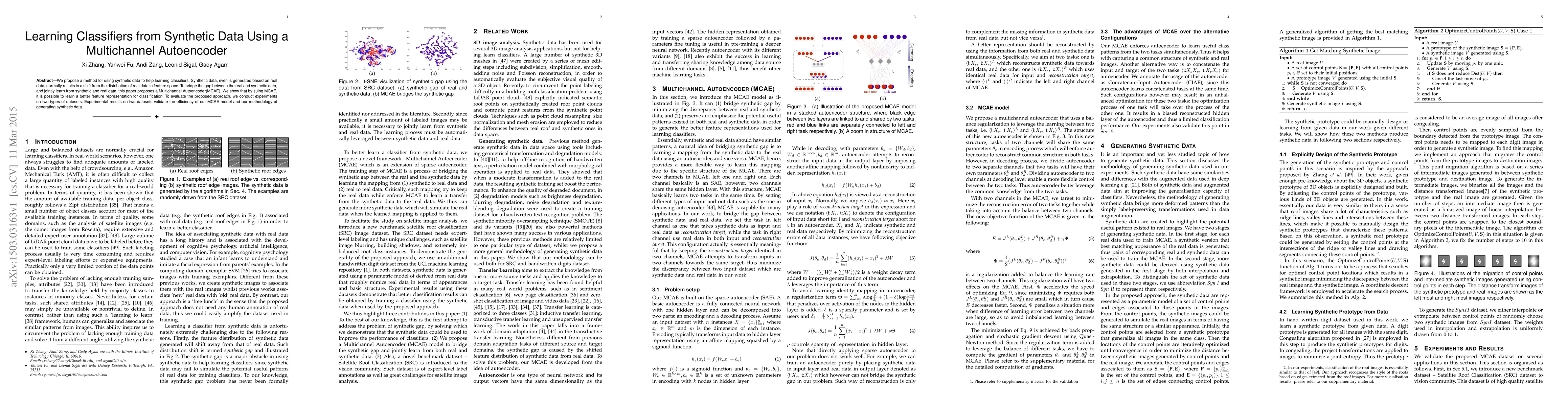 This paper proposes a Multichannel Autoencoder (MCAE) to bridge the distribution gap between synthetic and real data for improved classifier learning. Experiments on two datasets demonstrate the efficiency of MCAE in generating better feature representations for classification.