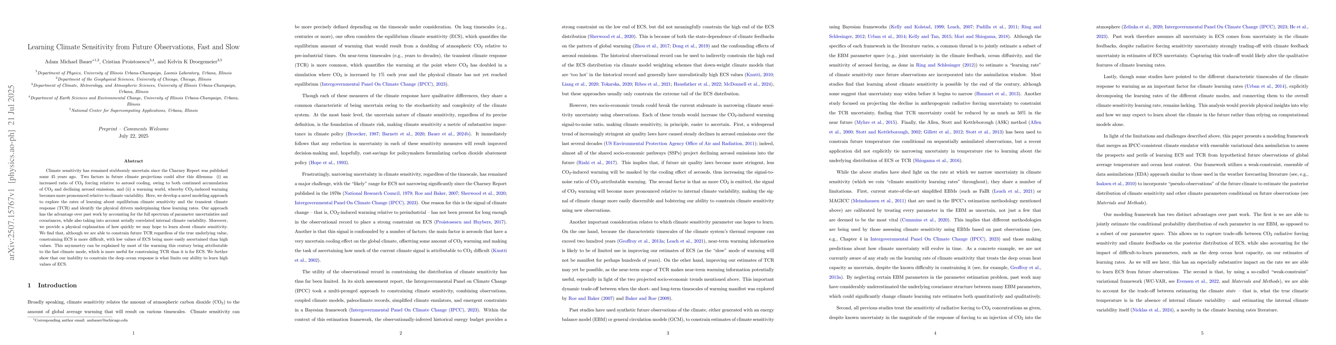Climate sensitivity has remained stubbornly uncertain since the Charney Report was published some 45 years ago. Two factors in future climate projections could alter this dilemma: (i) an increased ratio of CO$_2$ forcing relative to aerosol cooling, owing to both continued accumulation of CO$_2$ and declining aerosol emissions, and (ii) a warming world, whereby CO$_2$-induced warming becomes more pronounced relative to climate variability. Here, we develop a novel modeling approach to explore the rates of learning about equilibrium climate sensitivity and the transient climate response (TCR) and identify the physical drivers underpinning these learning rates. Our approach has the advantage over past work by accounting for the full spectrum of parameter uncertainties and covariances, while also taking into account serially correlated internal climate variability. Moreover, we provide a physical explanation of how quickly we may hope to learn about climate sensitivity. We find that, although we are able to constrain future TCR regardless of the true underlying value, constraining ECS is more difficult, with low values of ECS being more easily ascertained than high values. This asymmetry can be explained by most of the warming this century being attributable to the fast climate mode, which is more useful for constraining TCR than it is for ECS. We further show that our inability to constrain the deep ocean response is what limits our ability to learn high values of ECS.