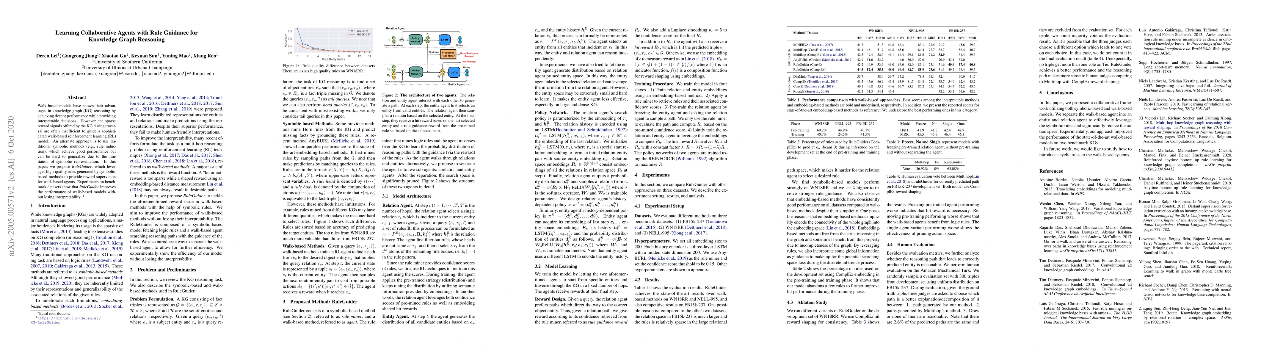 This paper introduces RuleGuider, a method that uses high-quality rules from symbolic-based methods to guide walk-based reinforcement learning models for knowledge graph reasoning. The approach enhances performance while maintaining interpretability, as demonstrated by experiments on benchmark datasets.