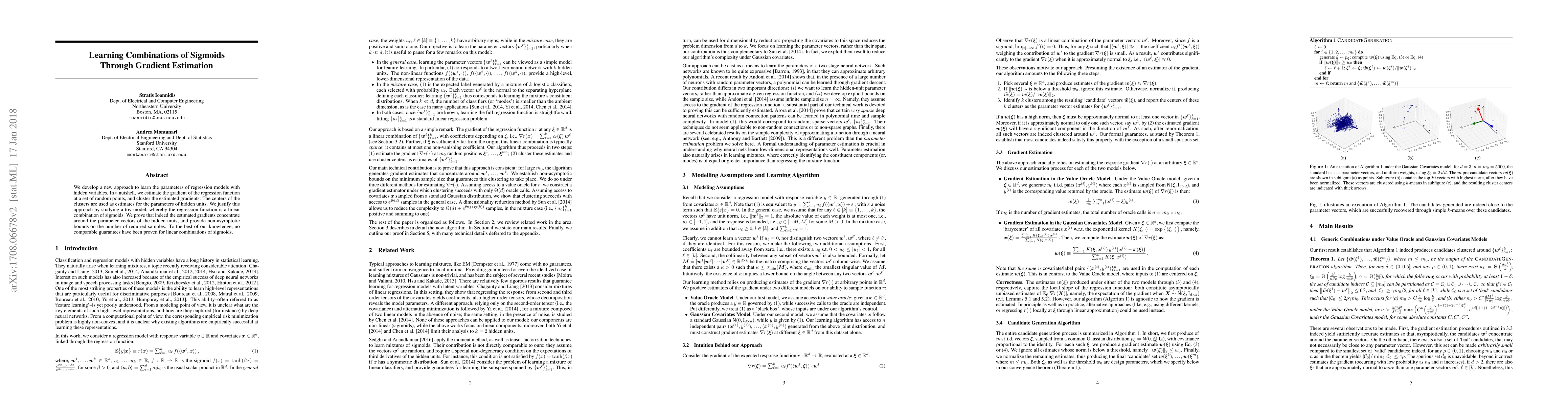 We develop a new approach to learn the parameters of regression models with hidden variables. In a nutshell, we estimate the gradient of the regression function at a set of random points, and cluster the estimated gradients. The centers of the clusters are used as estimates for the parameters of hidden units. We justify this approach by studying a toy model, whereby the regression function is a linear combination of sigmoids. We prove that indeed the estimated gradients concentrate around the parameter vectors of the hidden units, and provide non-asymptotic bounds on the number of required samples. To the best of our knowledge, no comparable guarantees have been proven for linear combinations of sigmoids.