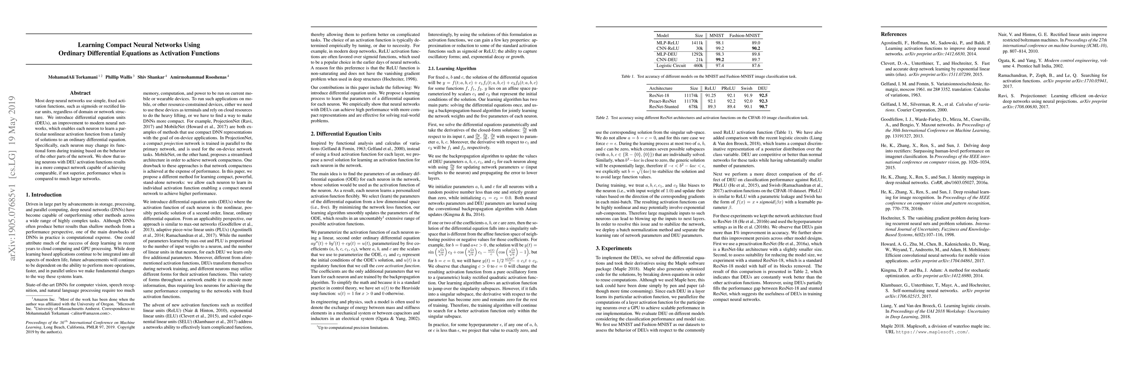 Researchers introduced a new type of neural network activation function called differential equation units (DEUs), which enable neurons to learn nonlinear functions during training, resulting in more compact networks with comparable performance.