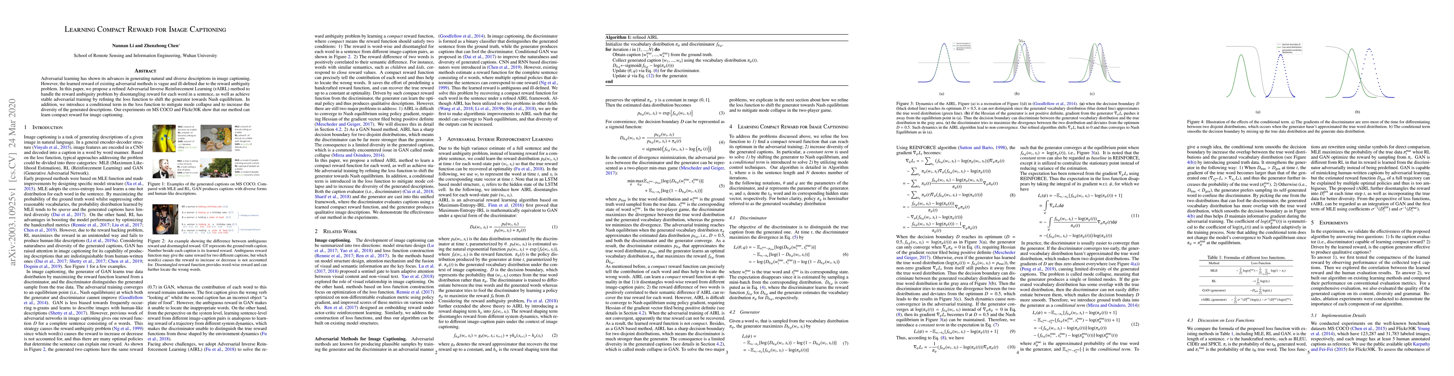 Adversarial learning has shown its advances in generating natural and diverse descriptions in image captioning. However, the learned reward of existing adversarial methods is vague and ill-defined due to the reward ambiguity problem. In this paper, we propose a refined Adversarial Inverse Reinforcement Learning (rAIRL) method to handle the reward ambiguity problem by disentangling reward for each word in a sentence, as well as achieve stable adversarial training by refining the loss function to shift the generator towards Nash equilibrium. In addition, we introduce a conditional term in the loss function to mitigate mode collapse and to increase the diversity of the generated descriptions. Our experiments on MS COCO and Flickr30K show that our method can learn compact reward for image captioning.