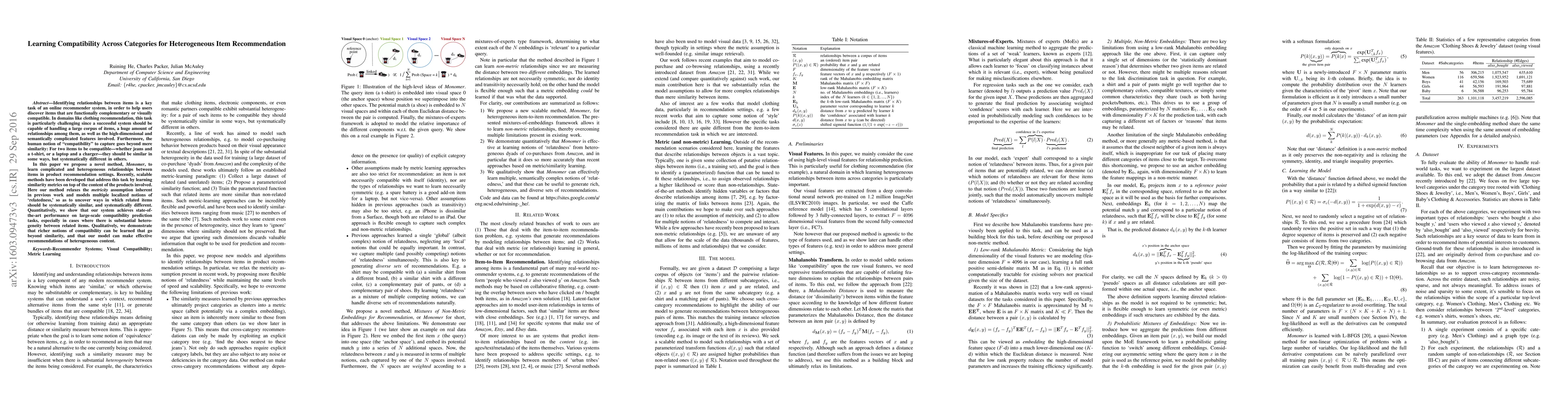This paper proposes a method called Monomer to learn heterogeneous relationships between items in product recommendation settings, achieving state-of-the-art performance on compatibility prediction tasks.