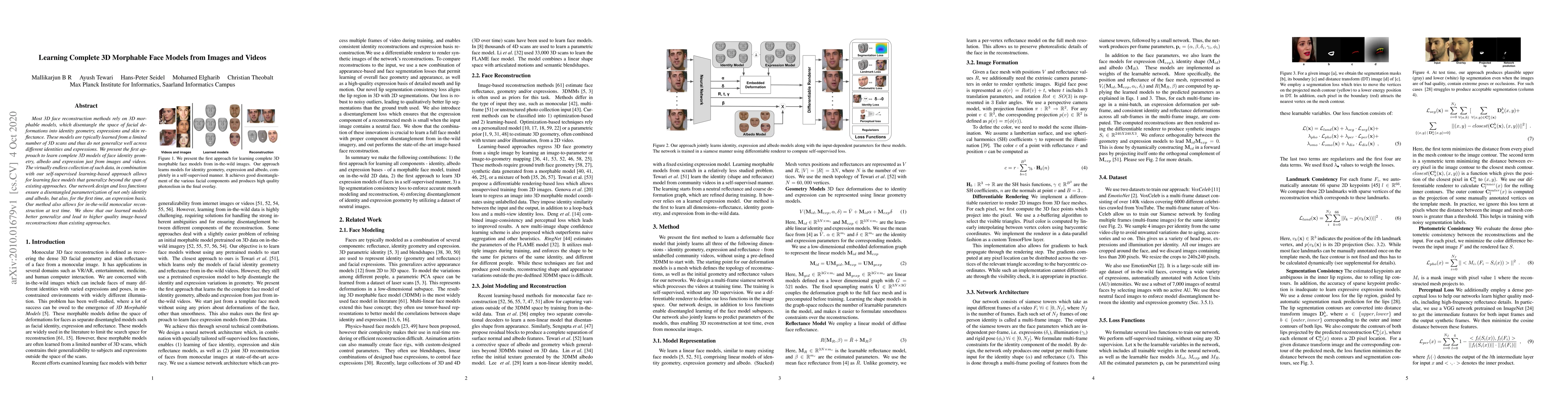 This paper introduces a novel method to learn complete 3D morphable face models from images and videos, leveraging self-supervised learning to generalize beyond existing 3D scan-based approaches. The proposed network disentangles identity, albedo, and expression, enabling higher quality and more generalizable reconstructions.