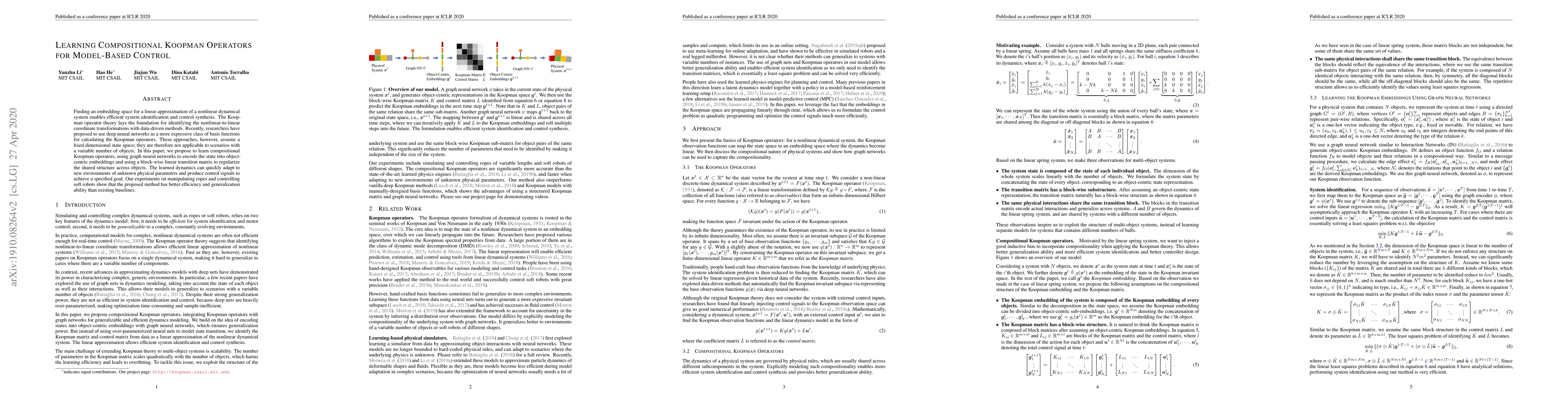 This paper proposes learning compositional Koopman operators using graph neural networks to handle variable object states, enabling efficient system identification and control synthesis. The method demonstrates better efficiency and generalization in tasks like manipulating ropes and controlling soft robots compared to existing approaches.