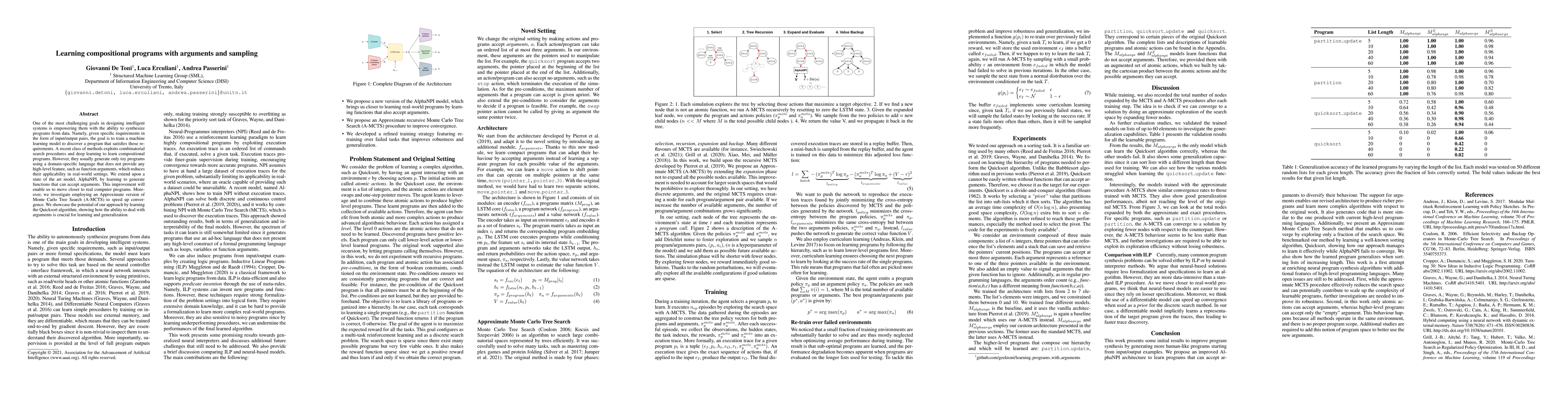 This paper extends a state-of-the-art model to generate compositional programs with function arguments, enhancing its applicability for real-world use. It also employs an Approximate Monte Carlo Tree Search for faster convergence, demonstrated through the learning of the Quicksort algorithm.
