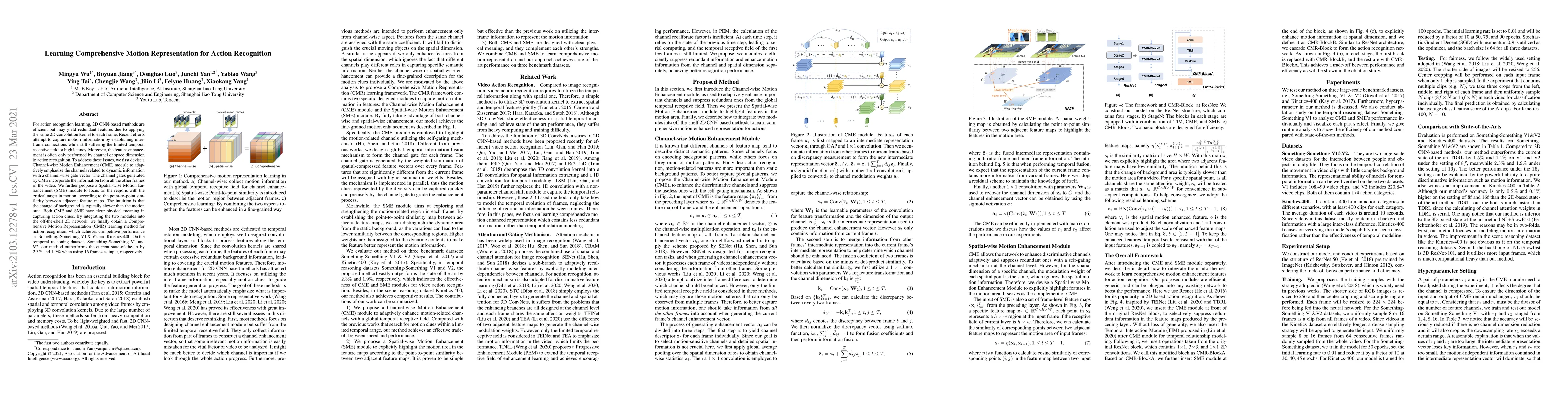 This paper proposes a Comprehensive Motion Representation (CMR) method for action recognition, integrating Channel-wise Motion Enhancement (CME) and Spatial-wise Motion Enhancement (SME) modules to improve feature representation. The CMR method outperforms current state-of-the-art on Something-Something V1 & V2 and Kinetics-400 datasets, achieving a notable 2.3% and 1.9% improvement on temporal reasoning datasets.
