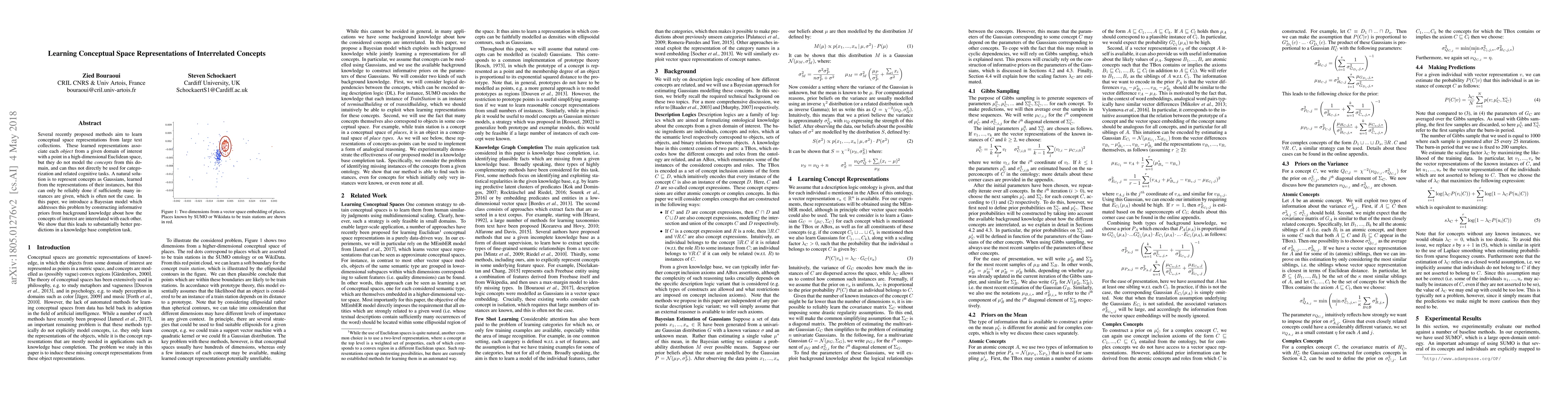 Several recently proposed methods aim to learn conceptual space representations from large text collections. These learned representations asso- ciate each object from a given domain of interest with a point in a high-dimensional Euclidean space, but they do not model the concepts from this do- main, and can thus not directly be used for catego- rization and related cognitive tasks. A natural solu- tion is to represent concepts as Gaussians, learned from the representations of their instances, but this can only be reliably done if sufficiently many in- stances are given, which is often not the case. In this paper, we introduce a Bayesian model which addresses this problem by constructing informative priors from background knowledge about how the concepts of interest are interrelated with each other. We show that this leads to substantially better pre- dictions in a knowledge base completion task.