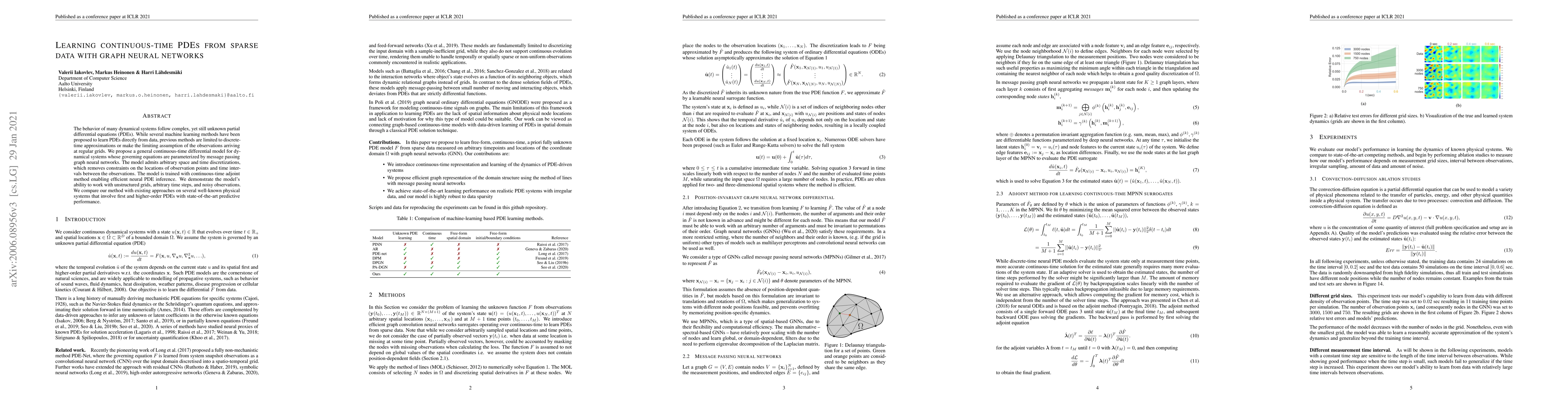 Researchers propose a new method to learn partial differential equations from sparse data using graph neural networks, allowing for arbitrary space and time discretizations and efficient training with the continuous-time adjoint method.
