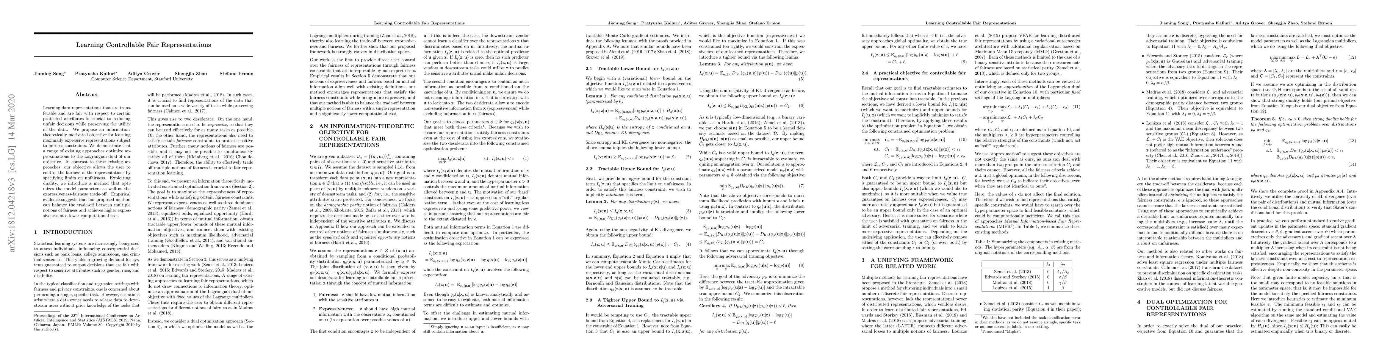 This paper proposes an information-theoretically motivated objective for learning fair data representations that can be controlled by specifying limits on unfairness. The method optimizes both model parameters and the trade-off between expressiveness and fairness, achieving higher expressiveness at lower computational costs compared to existing approaches.