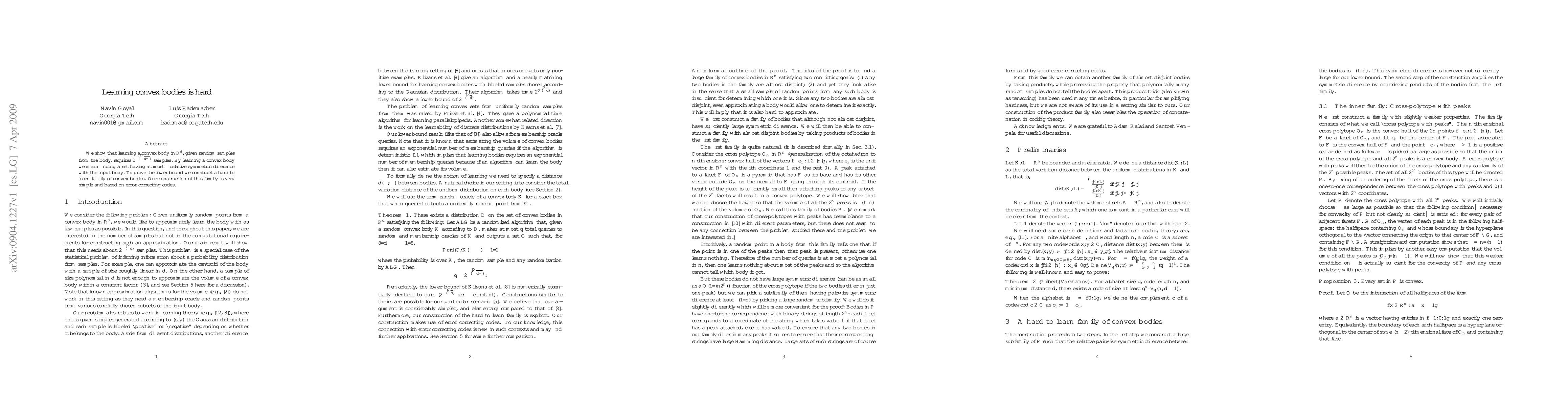 Learning to identify a convex shape in high-dimensional space requires an impractically large number of random samples, with the minimum needed being 2^{ extstyle oot{d} elativeroot{ extstyleloor{rac{1}{ extstyle heta}}}(rac{1}{ extstyle heta})} for extstyle heta = extstylerac{1}{ extstyle heta}. Learning a convex body involves finding a shape with at most extstyle heta relative symmetric difference to the input shape.