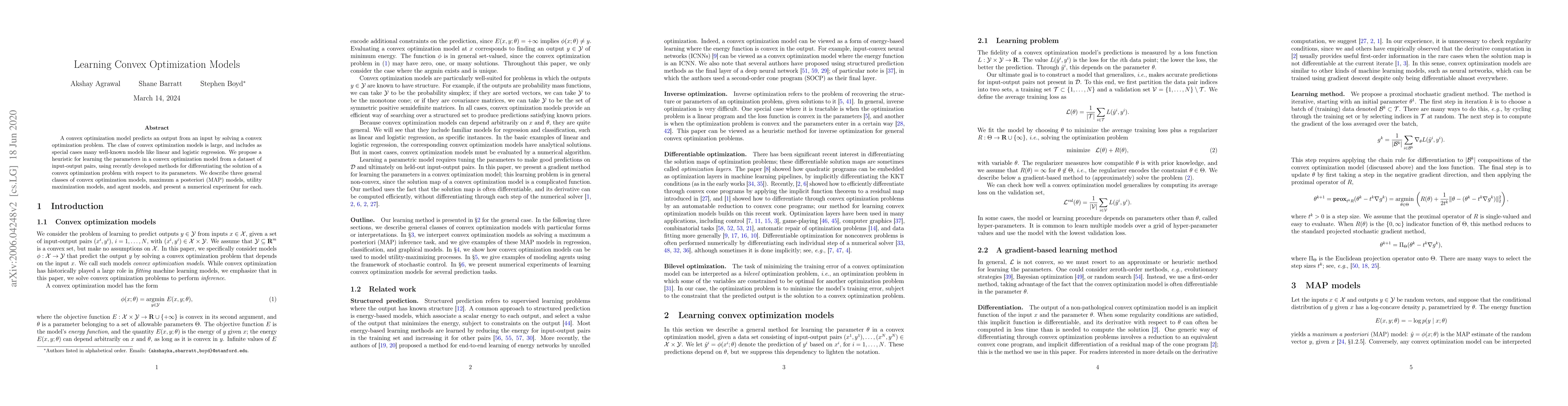A new method for learning parameters in convex optimization models is proposed, allowing for efficient training of various models like linear and logistic regression.